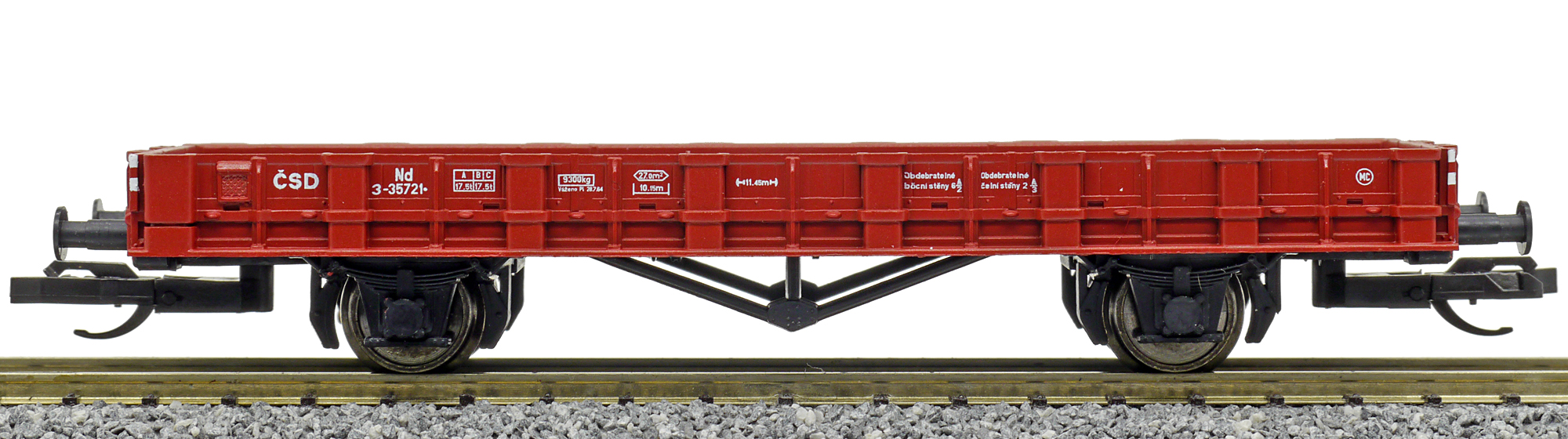 měřítko 1:120 - rozchod kolejí 12 mm kinematika krátkého spřáhla (KKK) podle normy NEM 358 96 mm - celková délka modelu přes nárazníky 2 - celkový počet náprav nebo rozložení náprav 100 g - hmotnost brutto - model včetně prodejního obalu