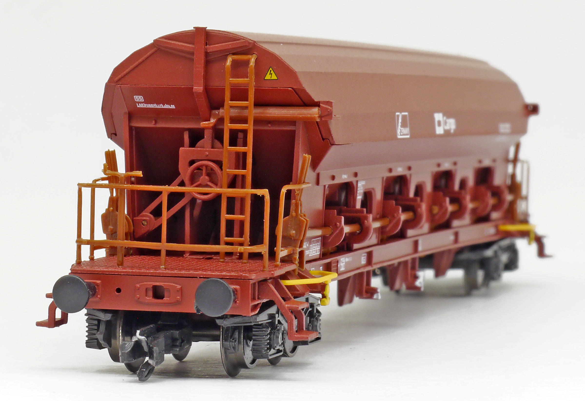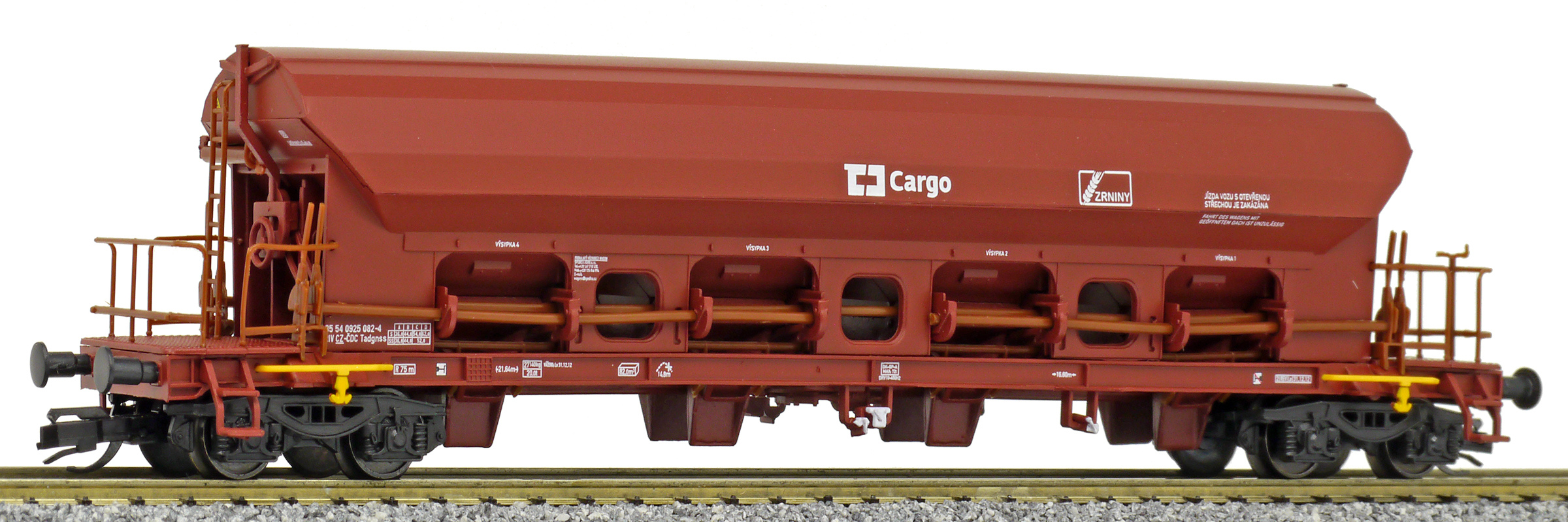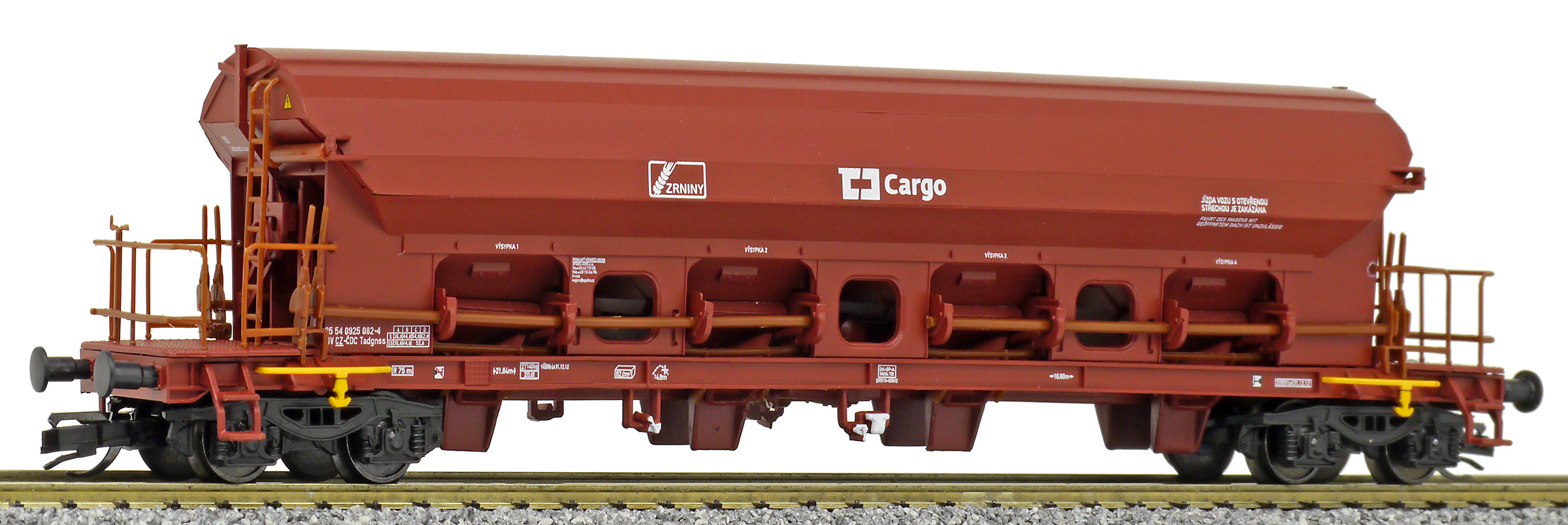 | nákladní samovýsypný vůz červenohnědý s logem „ZRNINY“ |