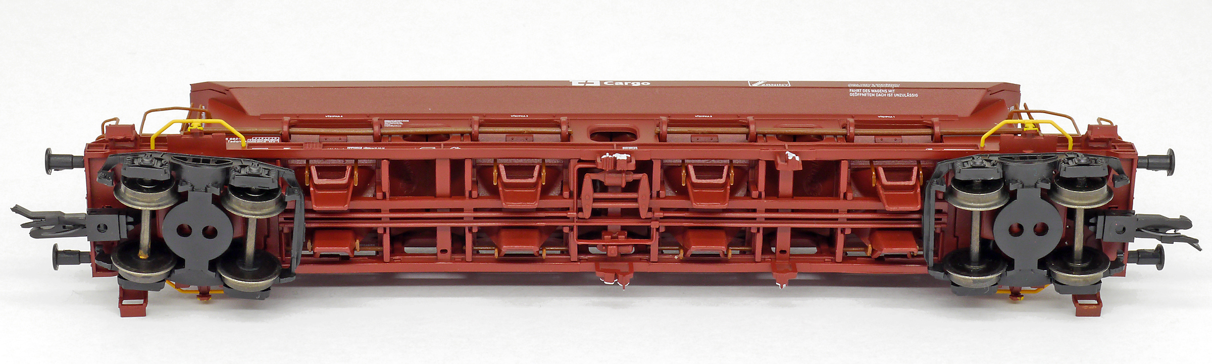 měřítko 1:120 - rozchod kolejí 12 mm kinematika krátkého spřáhla (KKK) podle normy NEM 358 159 mm - celková délka modelu přes nárazníky 4 - celkový počet náprav nebo rozložení náprav 85 g - hmotnost brutto - model včetně prodejního obalu 35 g - hmotnost netto - pouze model
