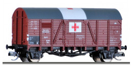 | krytý nákladní vůz červenohnědý s šedou střechou „Lazarettzug“ |