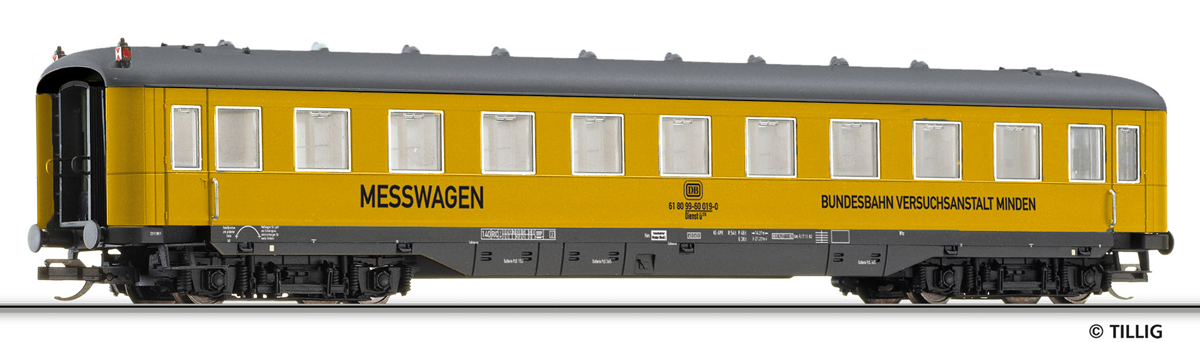 | pracovní vůz žlutý s tmavě šedou střechou „Bundesbahn-Versuchsanstalt Minden“ |