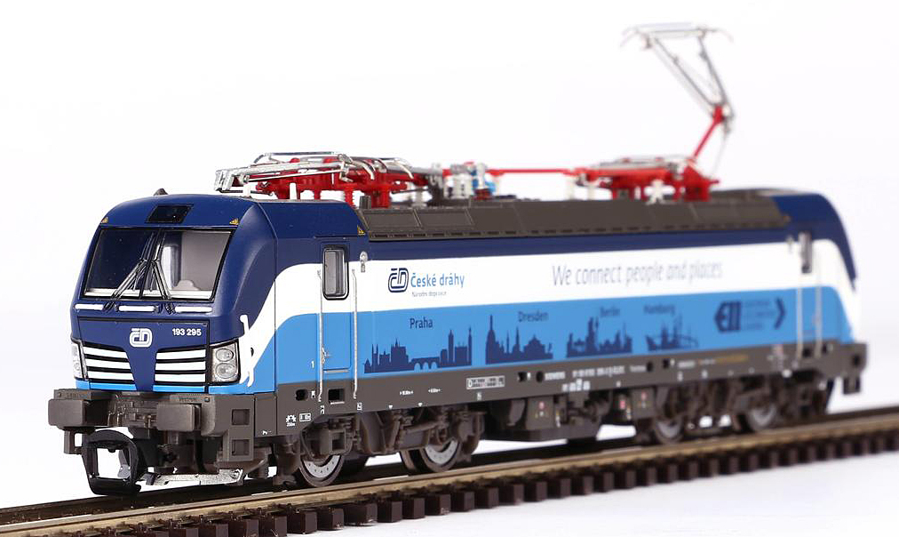 | elektrická lokomotiva „Vectron“ s potiskem „Prag-Berlin-Hamburg“ |