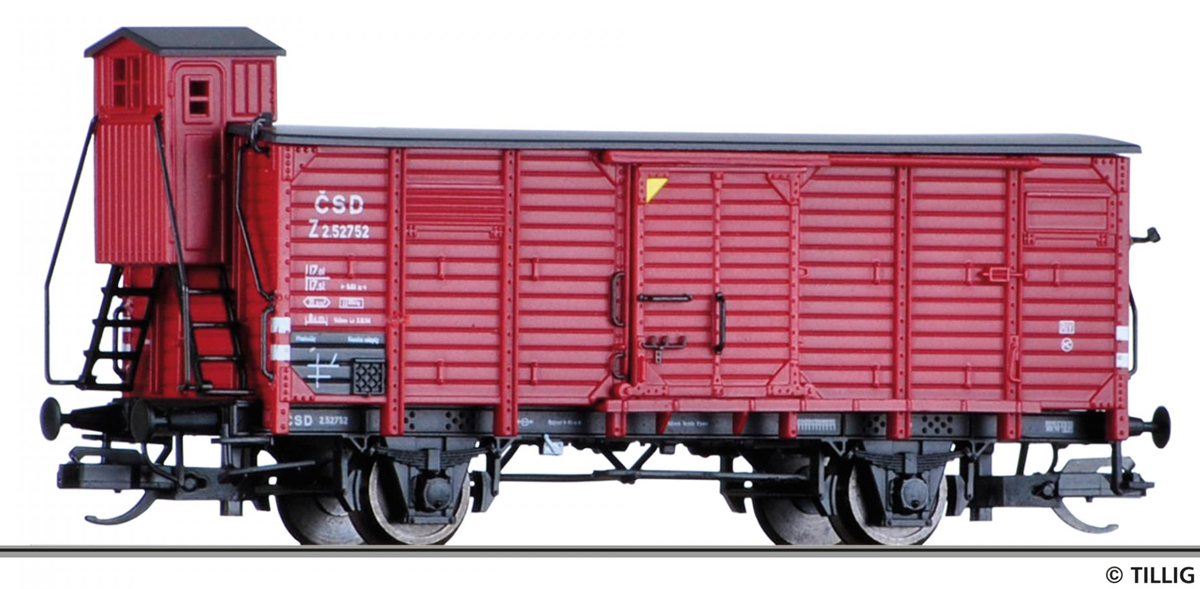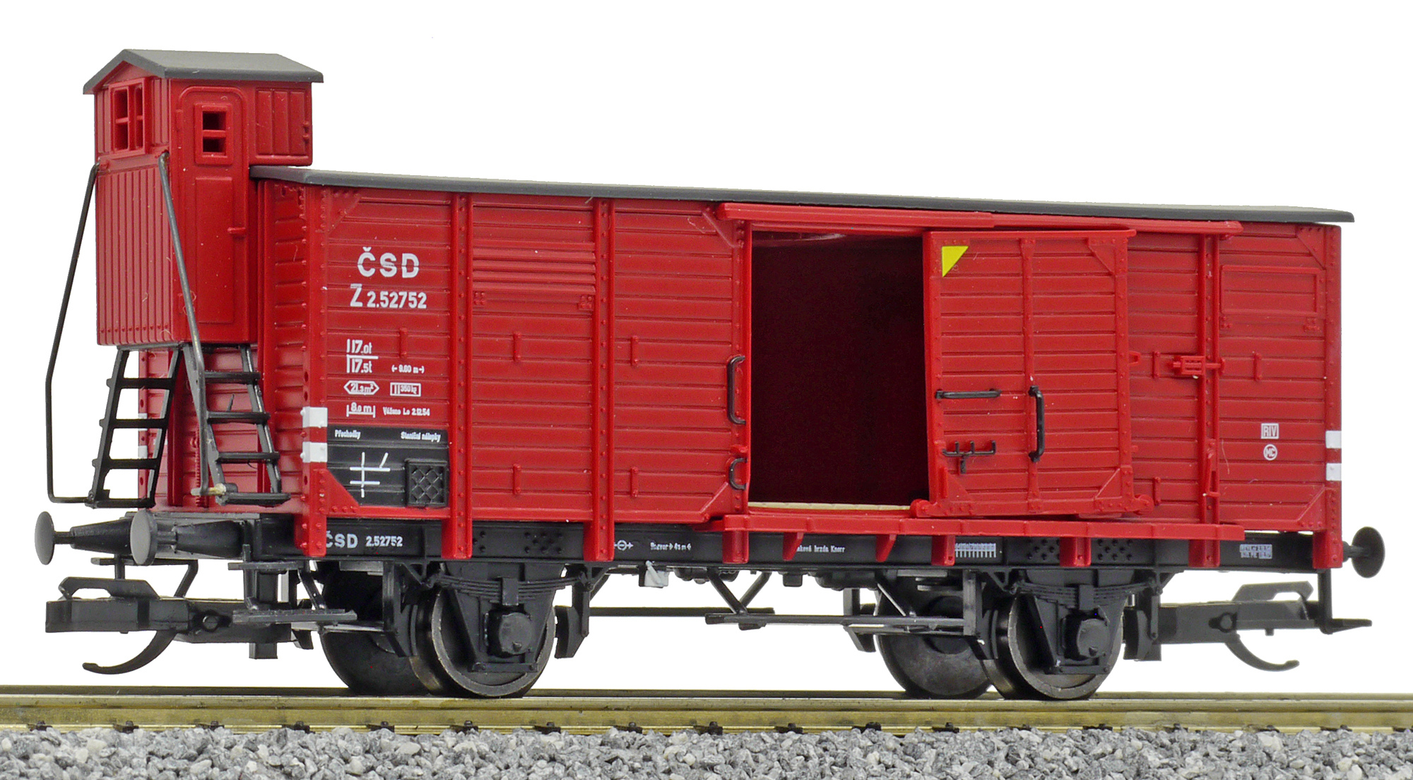 krytý nákladní vůz červenohnědý s brzdařskou budkou