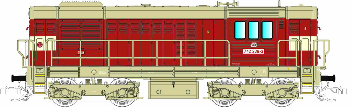 Popis   dieselová lokomotiva červená-krémová střecha, rám a pojezd