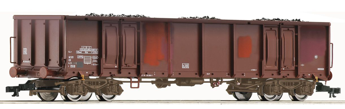 Popis   vysokostěnný nákladní vůz červenohnědý patinovaný s nákladem uhlí