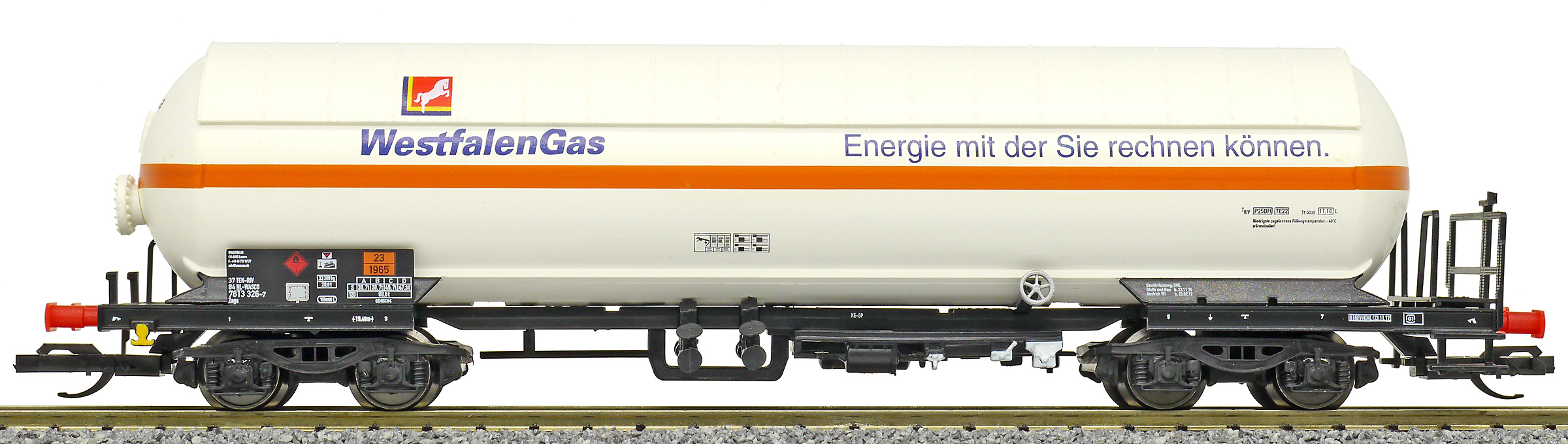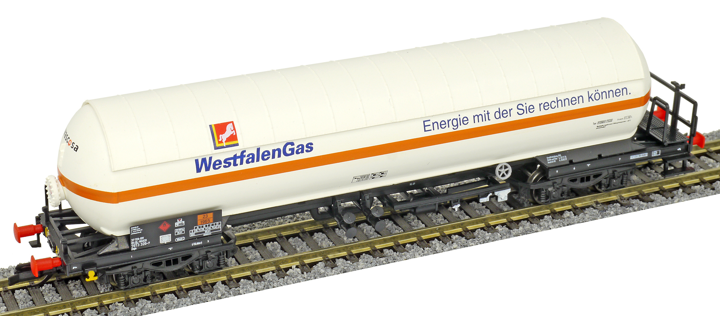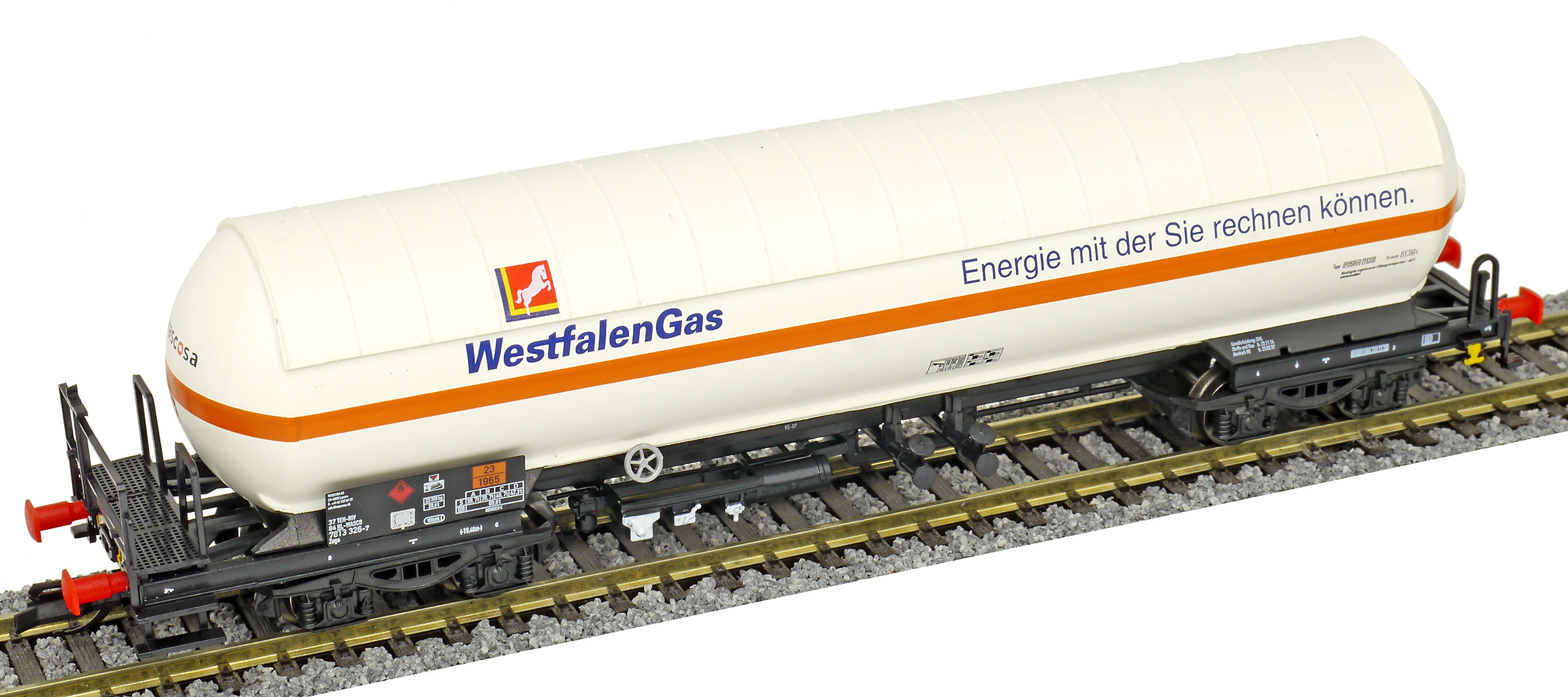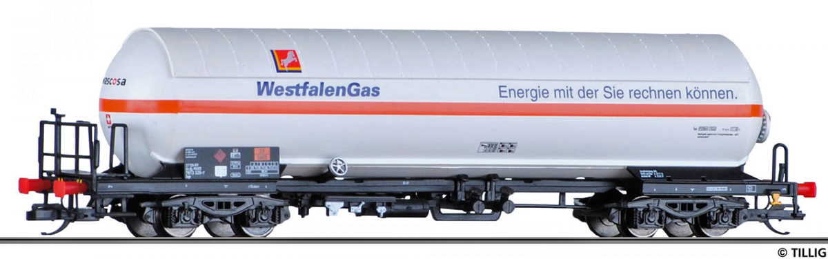 | kotlový vůz bílý se sluneční clonou „WestfalenGas“ |