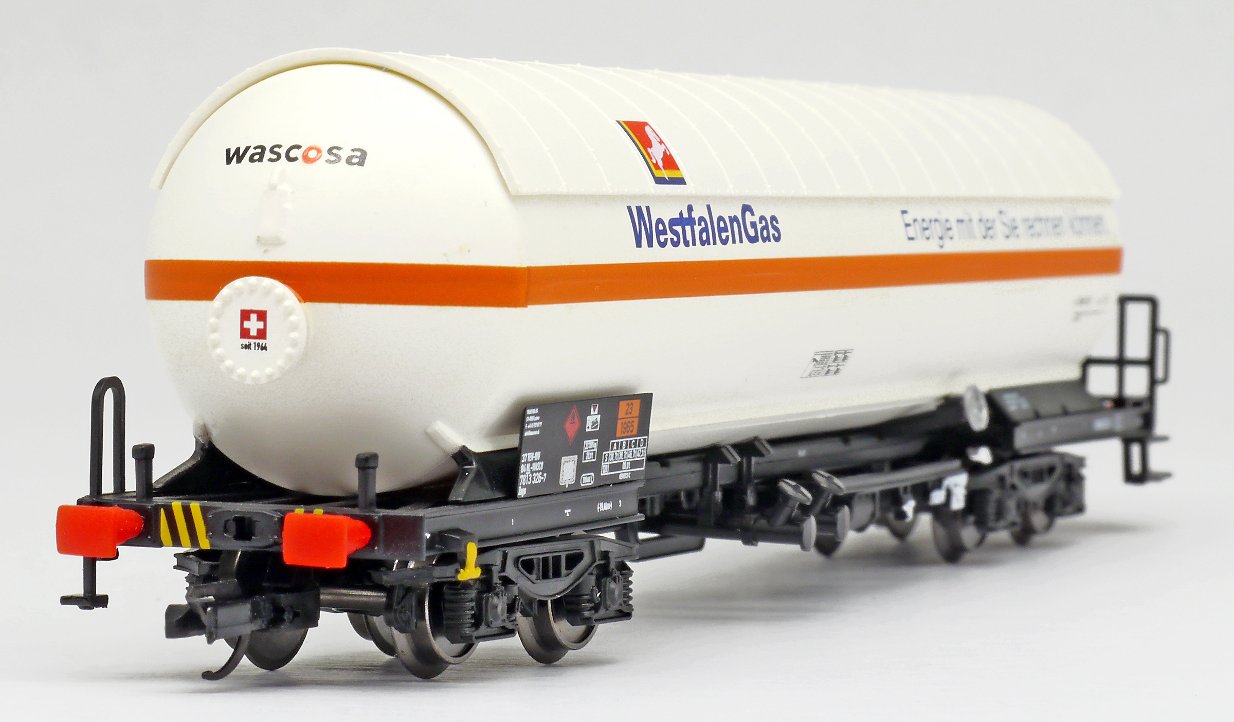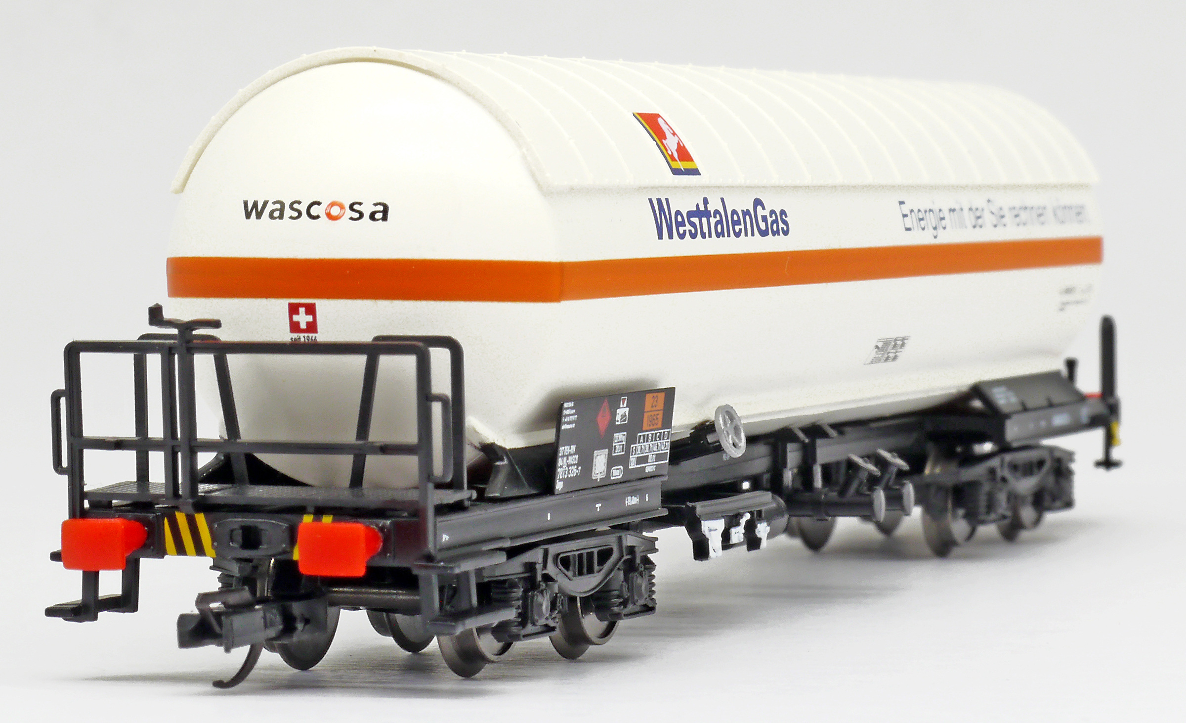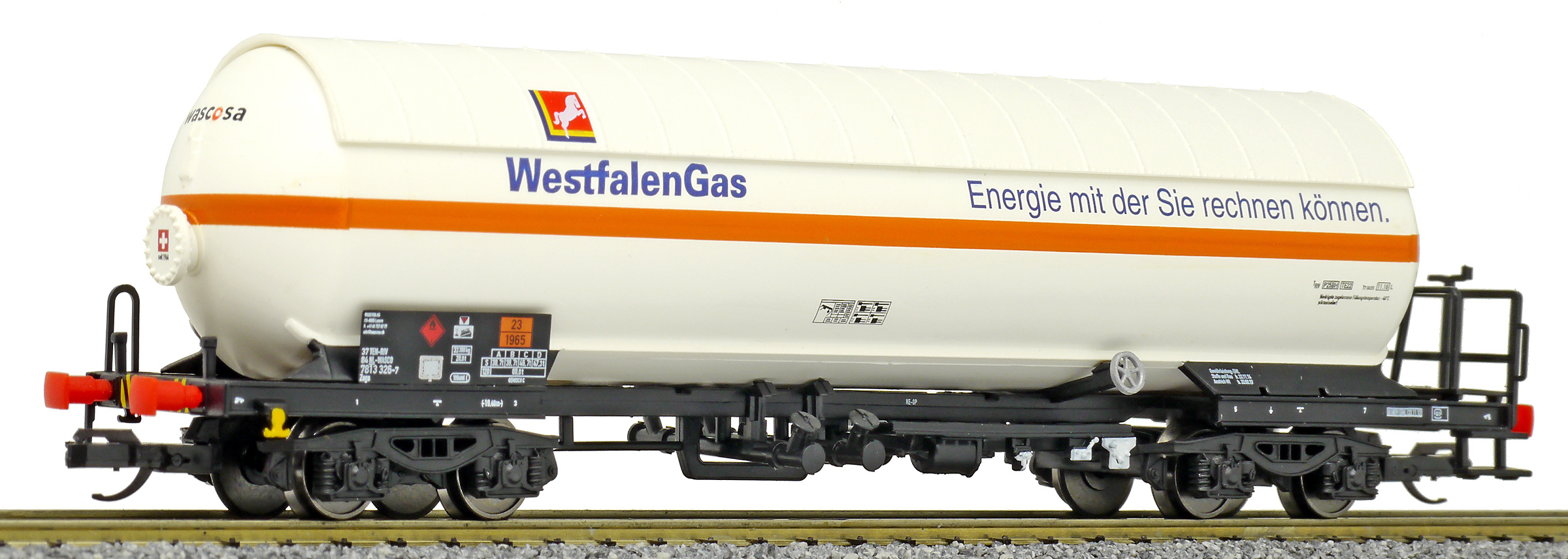 | kotlový vůz bílý se sluneční clonou „WestfalenGas“ |
