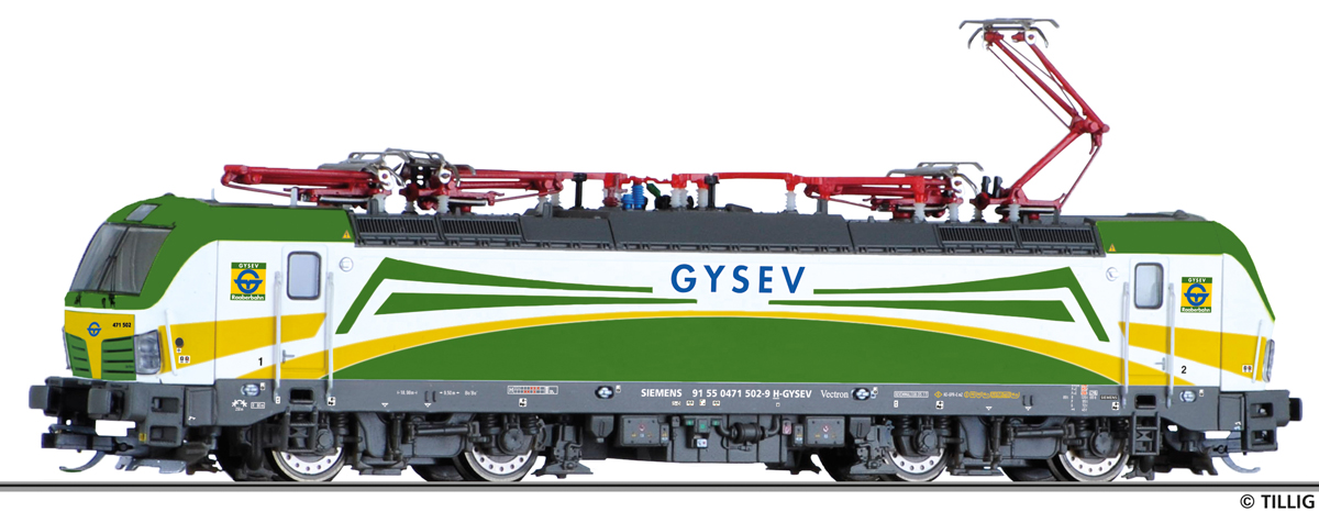 | elektrická lokomotiva v barevném schematu GYSEV |