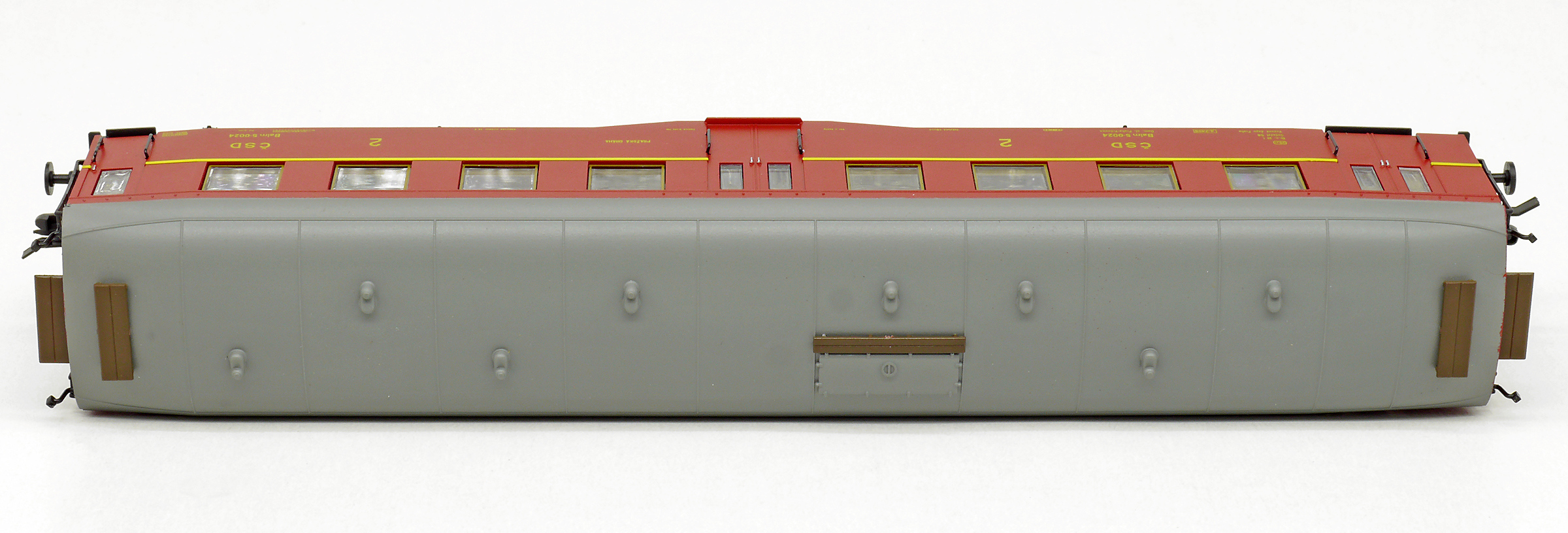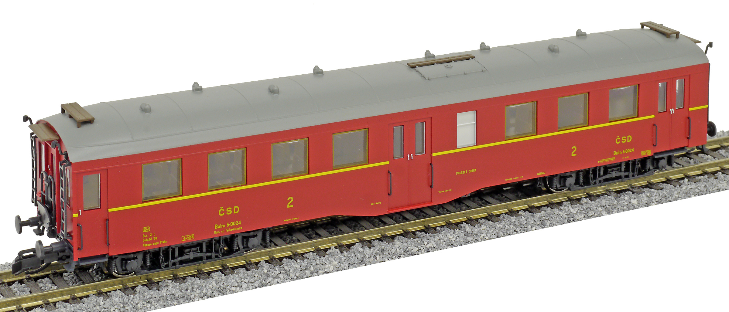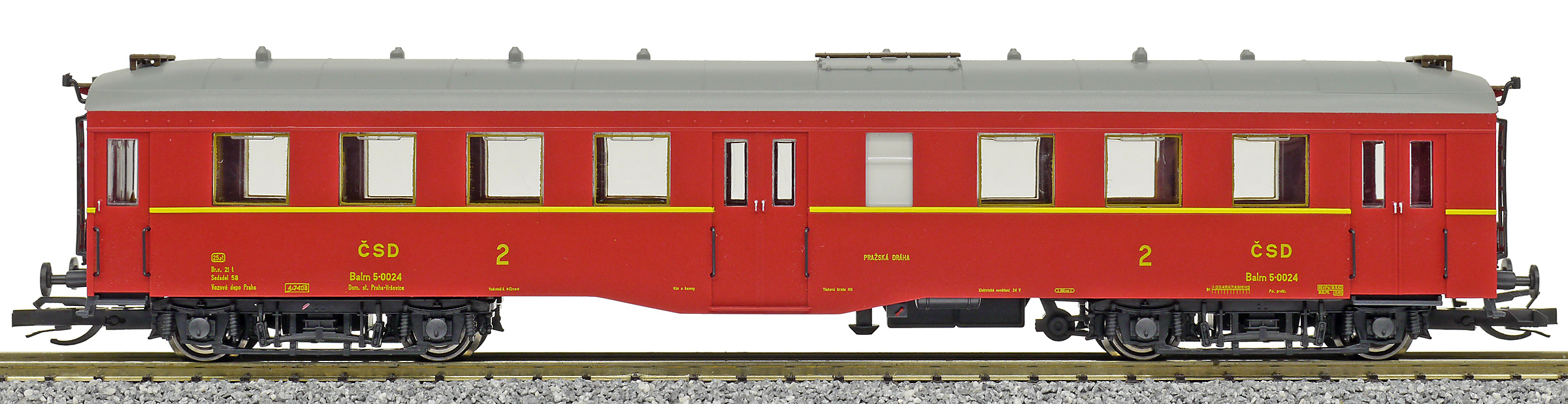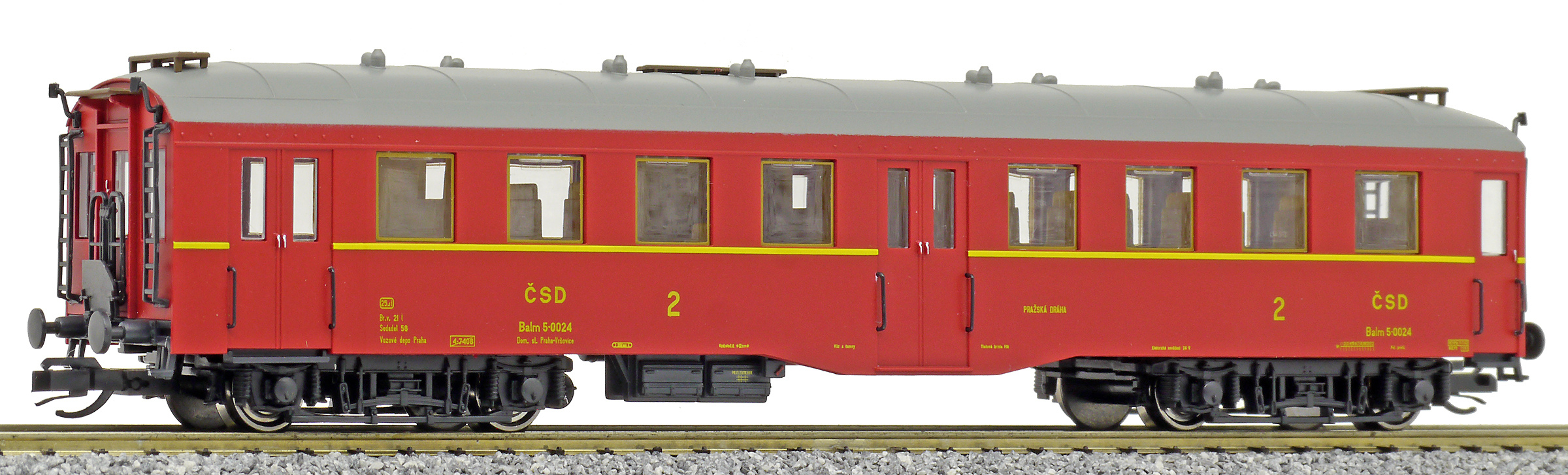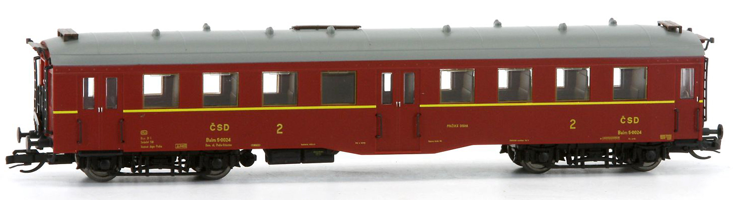 | osobní vůz červenohnědý s šedou střechou 2. tř. |