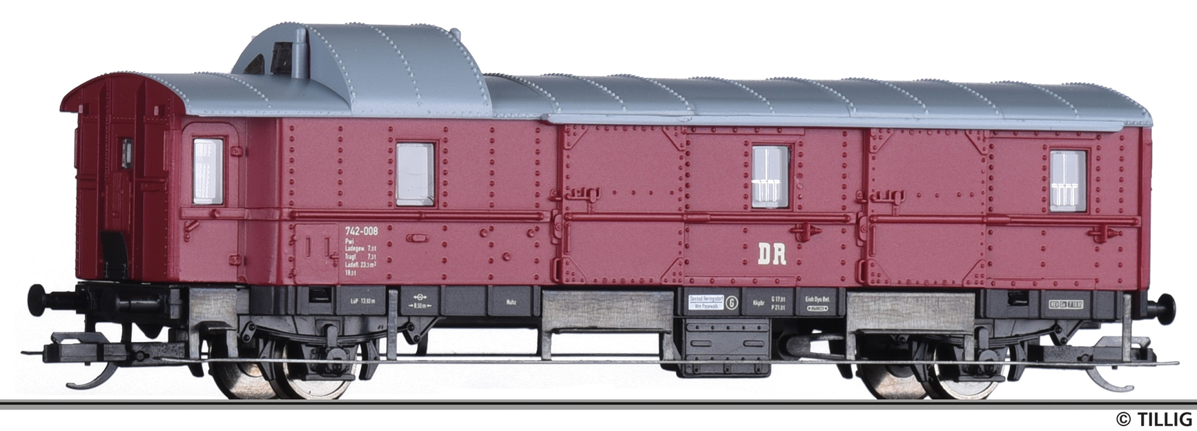 | zavazadlový vůz vínově červený s šedou střechou |