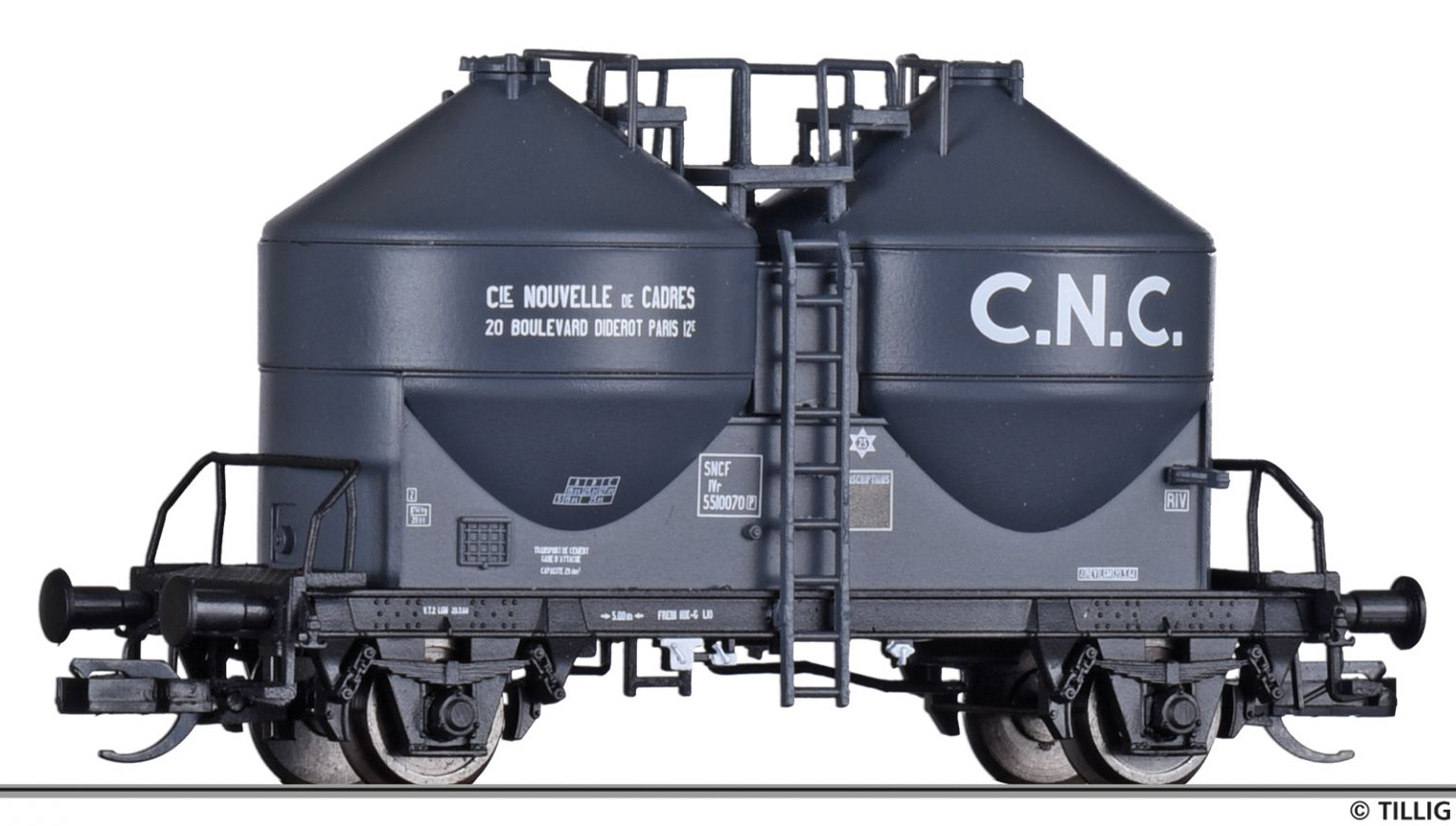 | nákladní samovýsypný vůz tmavě šedý „C.N.C.“ |