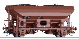 | samovýsypný vůz tmavě hnědý s nákladem uhlí |