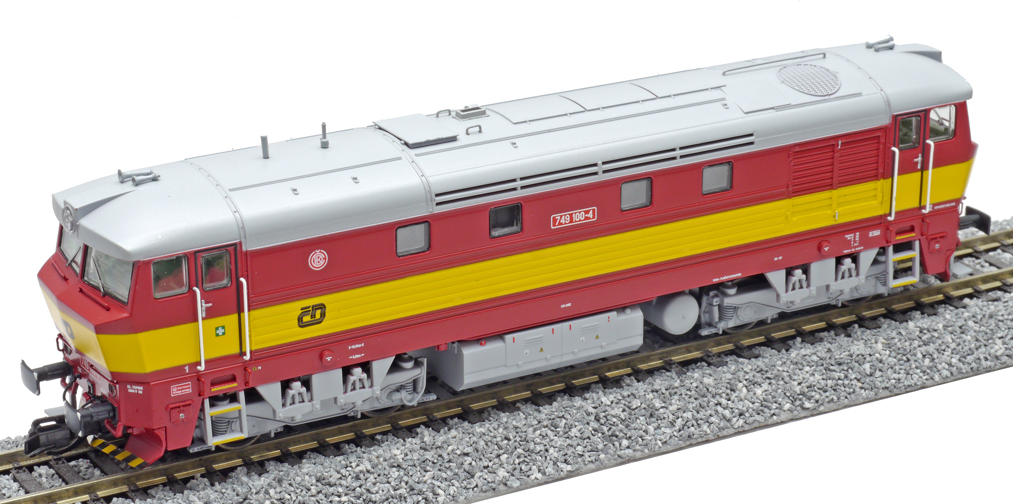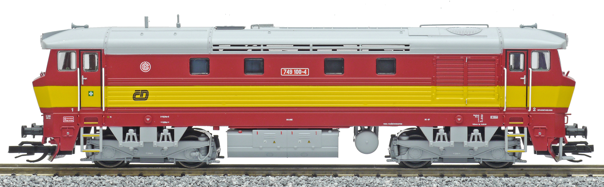 Popis   dieselová lokomotiva červená s výstražným pruhem, šedá střecha