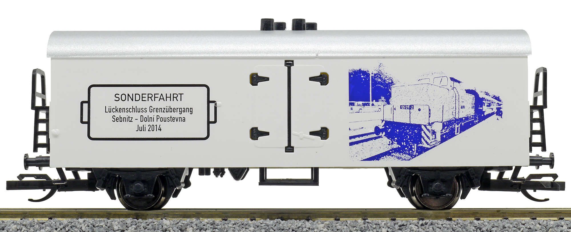 | chladící vůz bílý se stříbrnou střechou a s reklamním potiskem „Weihnachten 2014“ |