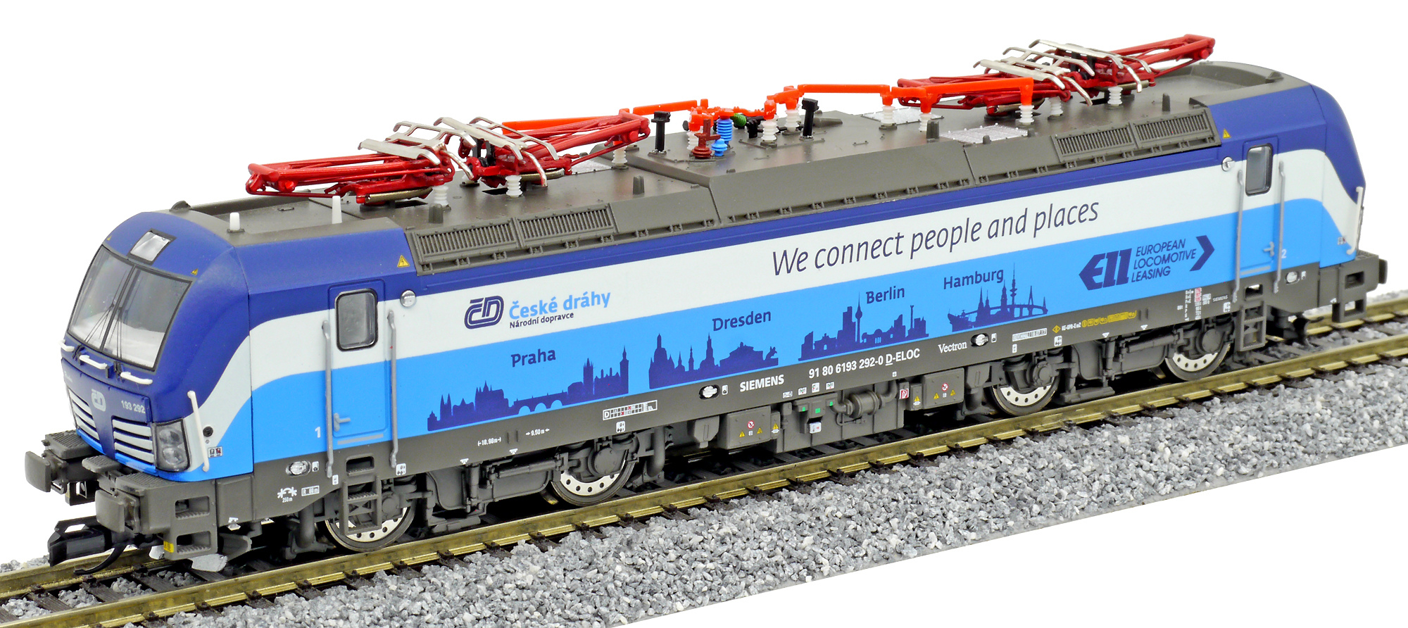 měřítko 1:120 - rozchod kolejí 12 mm osvětlení - 3 reflektory vpředu, 2 světla vzadu, přepínatelné podle směru jízdy 4 hnané nápravy 2 bandážované nápravy kinematika krátkého spřáhla (KKK) podle normy NEM 358 digitální rozhraní podle NEM 662 s konektorem Next18 možný provoz s pantografem 158 mm - celková délka modelu přes nárazníky 4 - celkový počet náprav nebo rozložení náprav 300 g - hmotnost brutto - model včetně prodejního obalu 155 g - hmotnost netto - pouze model