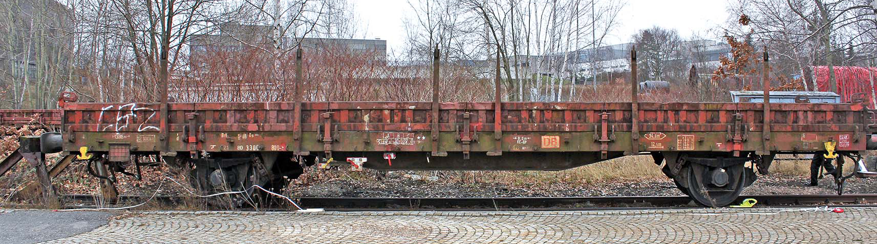 | • Ks 3300 | - | plošinový vůz dvounápravový běžné stavby se sklopnými nízkými stěnami a s krátkými klanicemi |