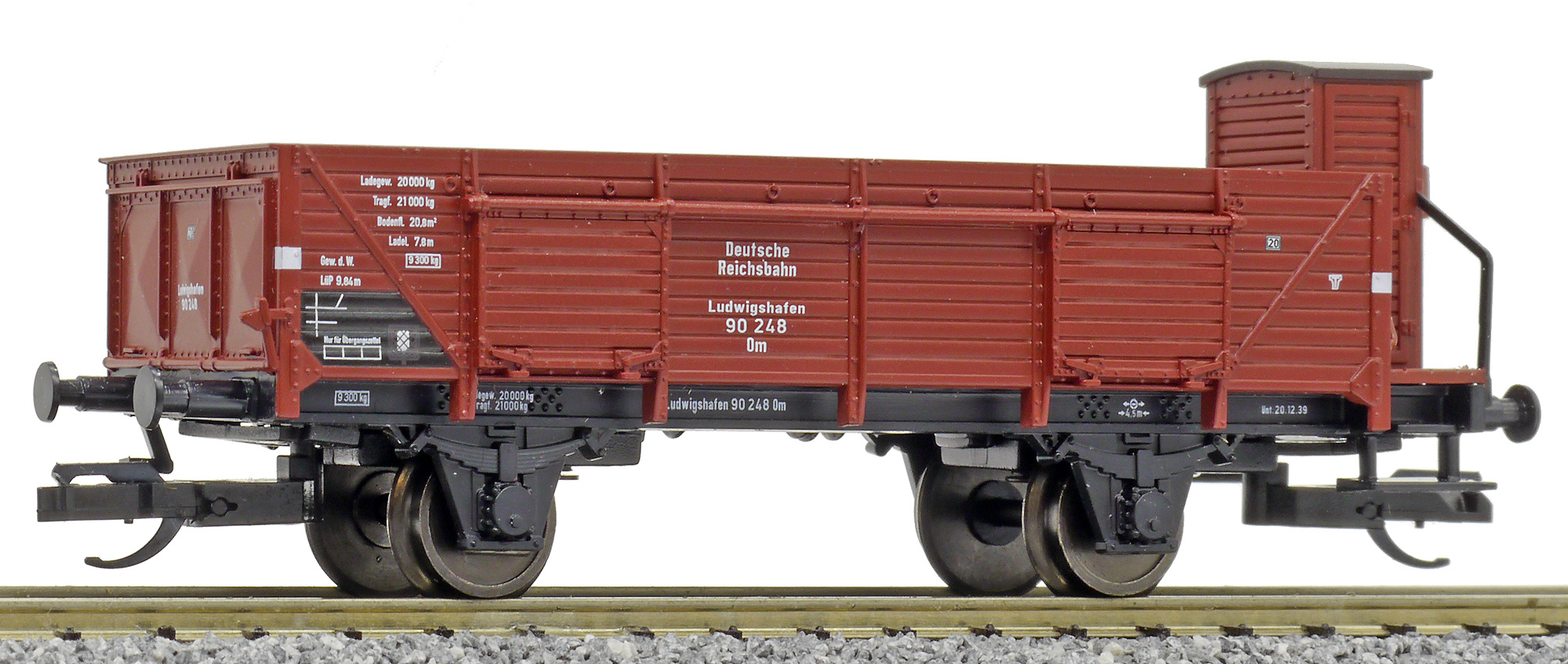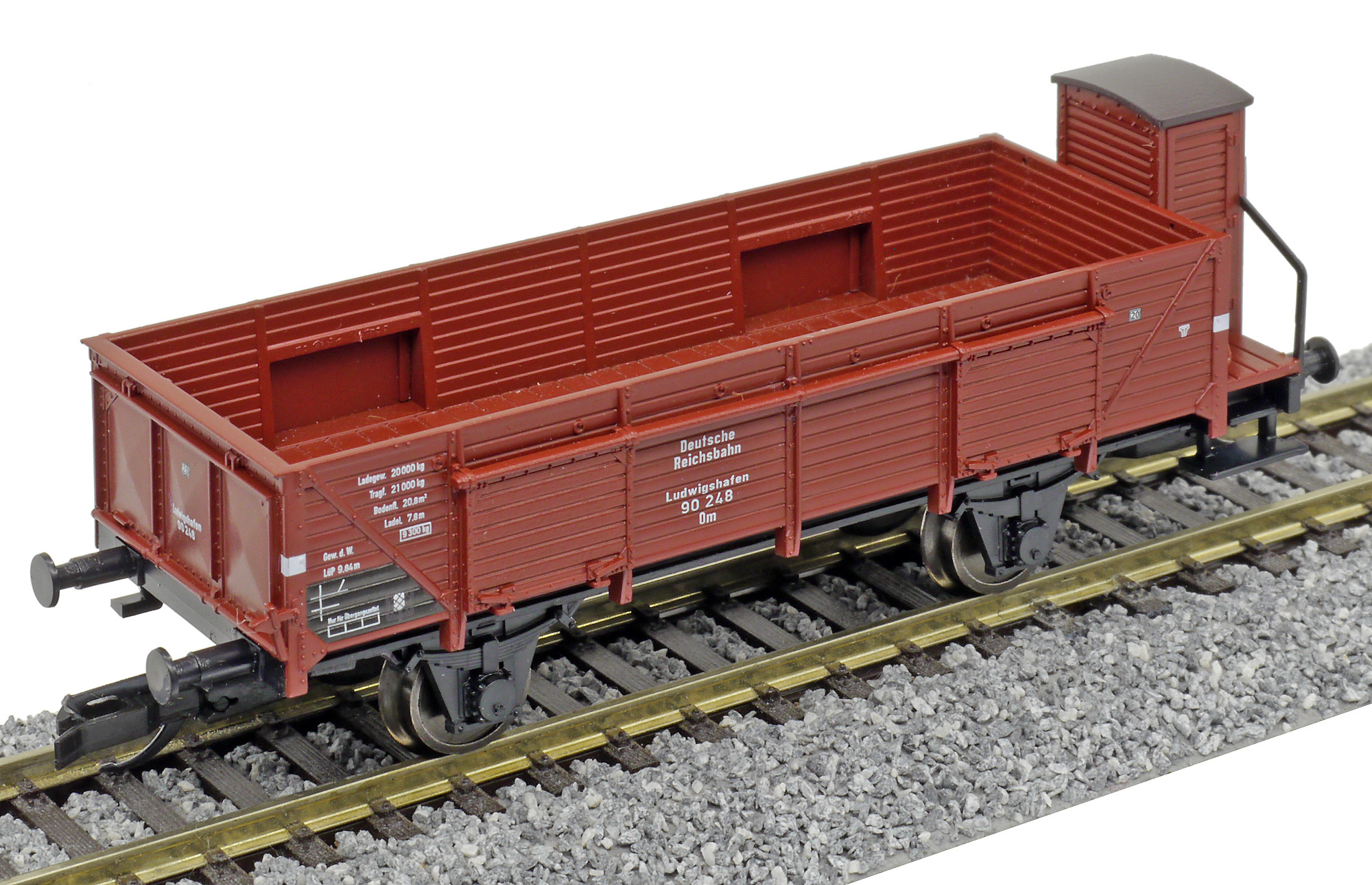 | otevřený nákladní vůz červenohnědý s brzdařskou budkou |