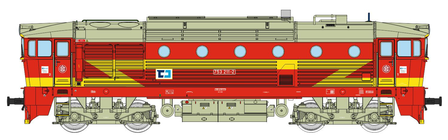 měřítko 1:120 - rozchod kolejí 12 mm osvětlení - 3 reflektory vpředu, 2 světla vzadu, přepínatelné podle směru jízdy 4 hnané nápravy 2 bandážované nápravy kinematika krátkého spřáhla (KKK) podle normy NEM 358 digitální rozhraní podle NEM 662 s konektorem Next18 setrvačník 138 mm - celková délka modelu přes nárazníky 4 - celkový počet náprav nebo rozložení náprav