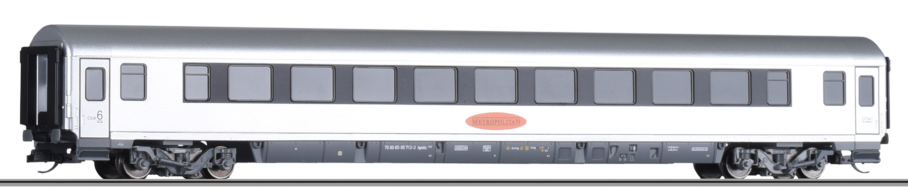 | rychlíkových vůz stříbrný s logem „Metropolitan“ |