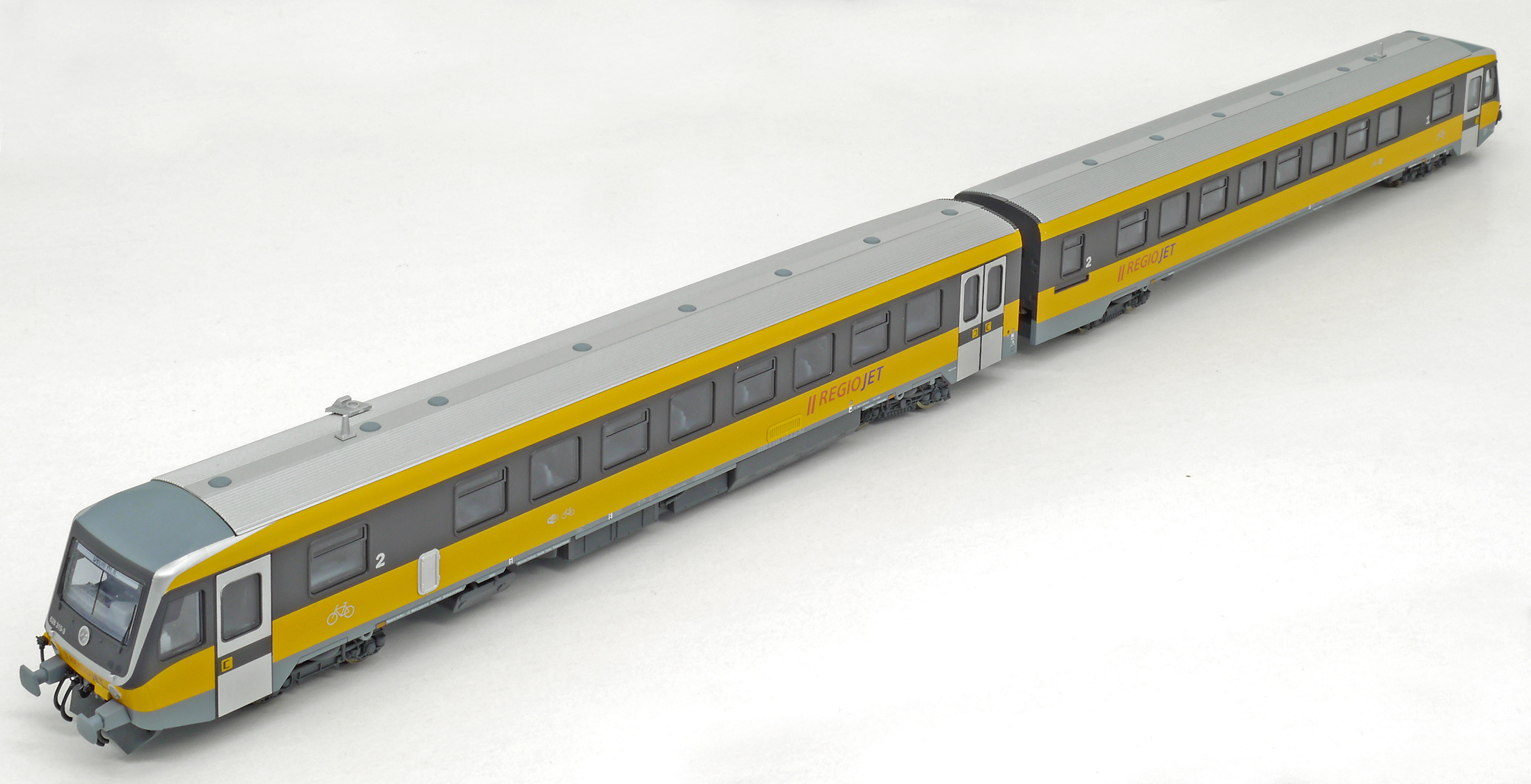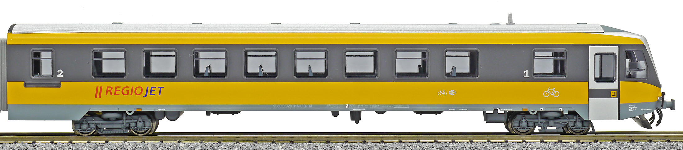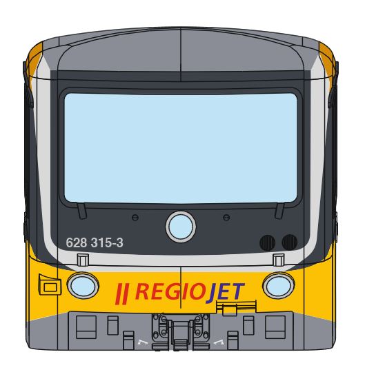 | motorová jednotka v barevném schematu „RegioJet“ |