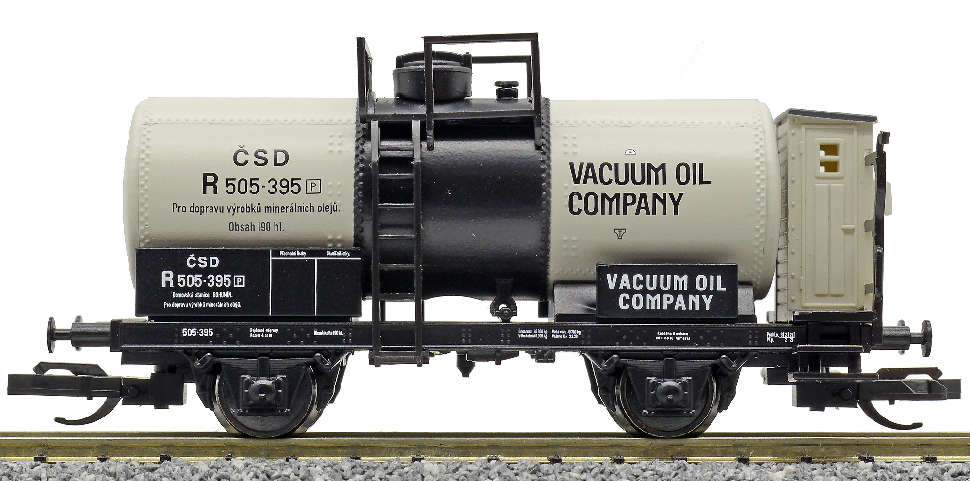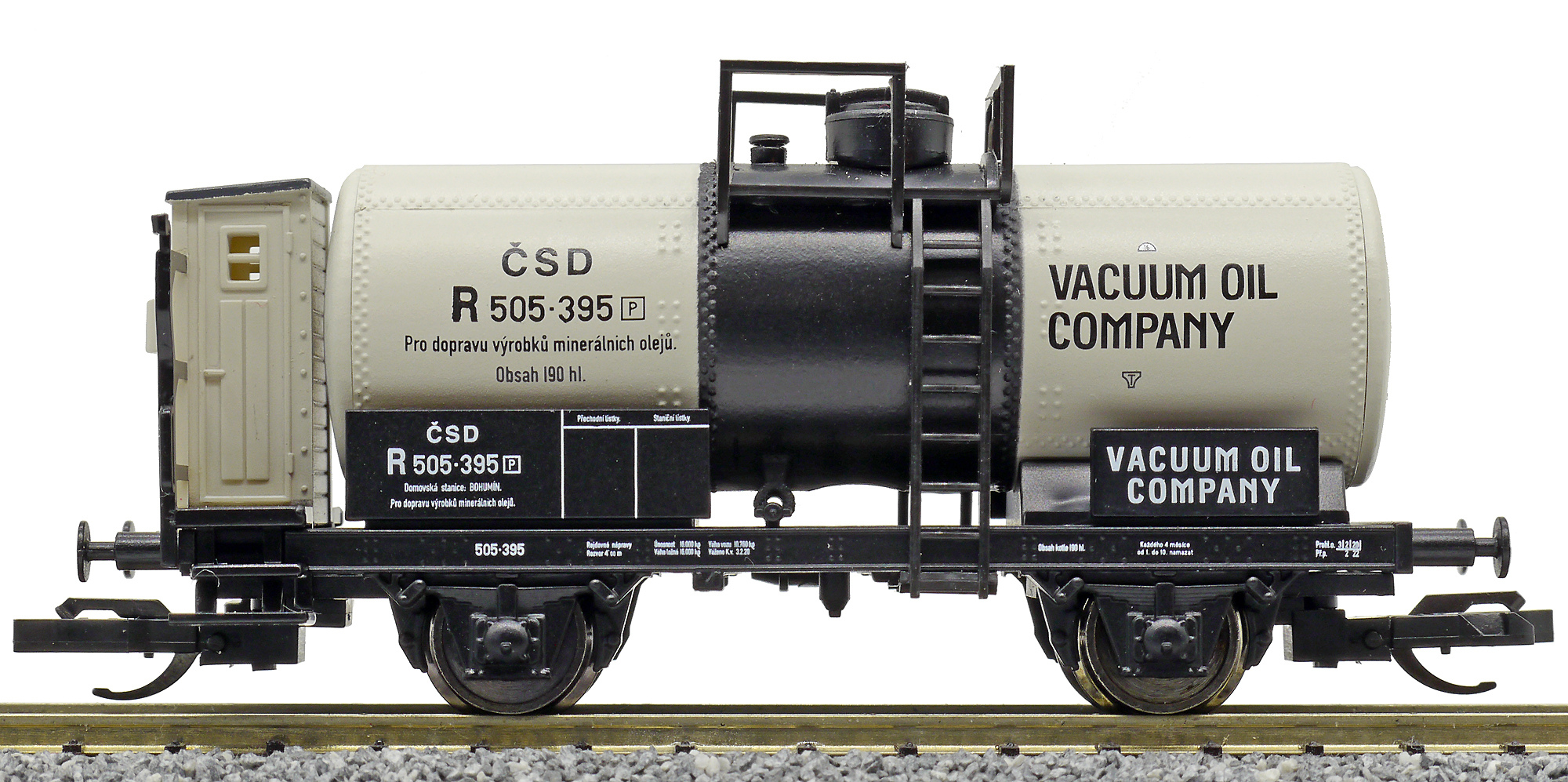 Popis   kotlový vůz šedý s brzdařskou budkou „VACUUM OIL COMPANY“