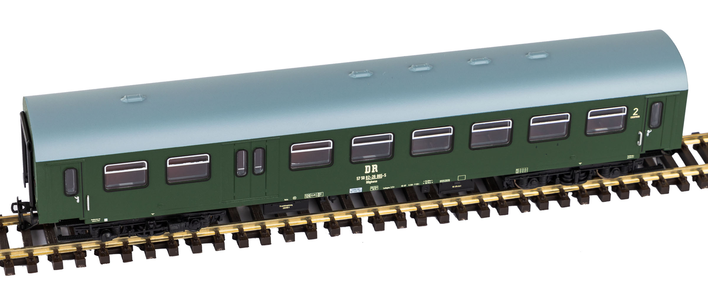 | rekonstruovaný osobní vůz zelený s šedou střechou 2. tř. se zavazadlovým oddílem |