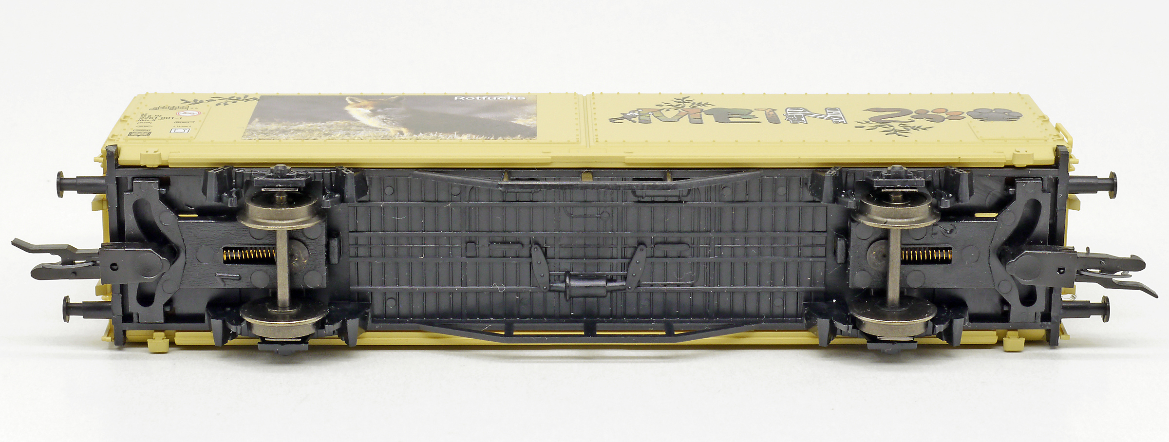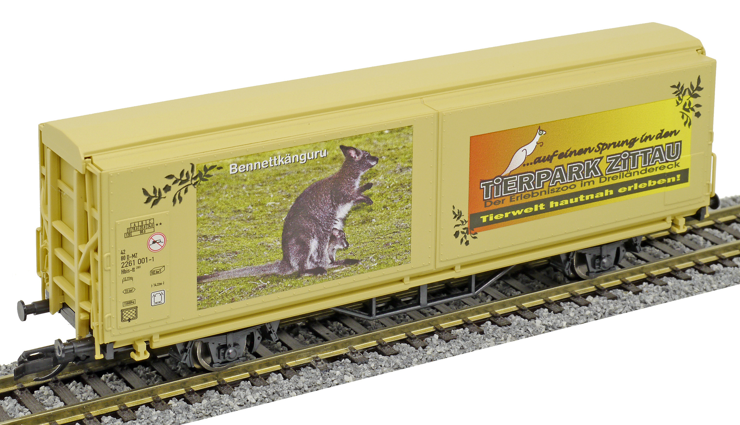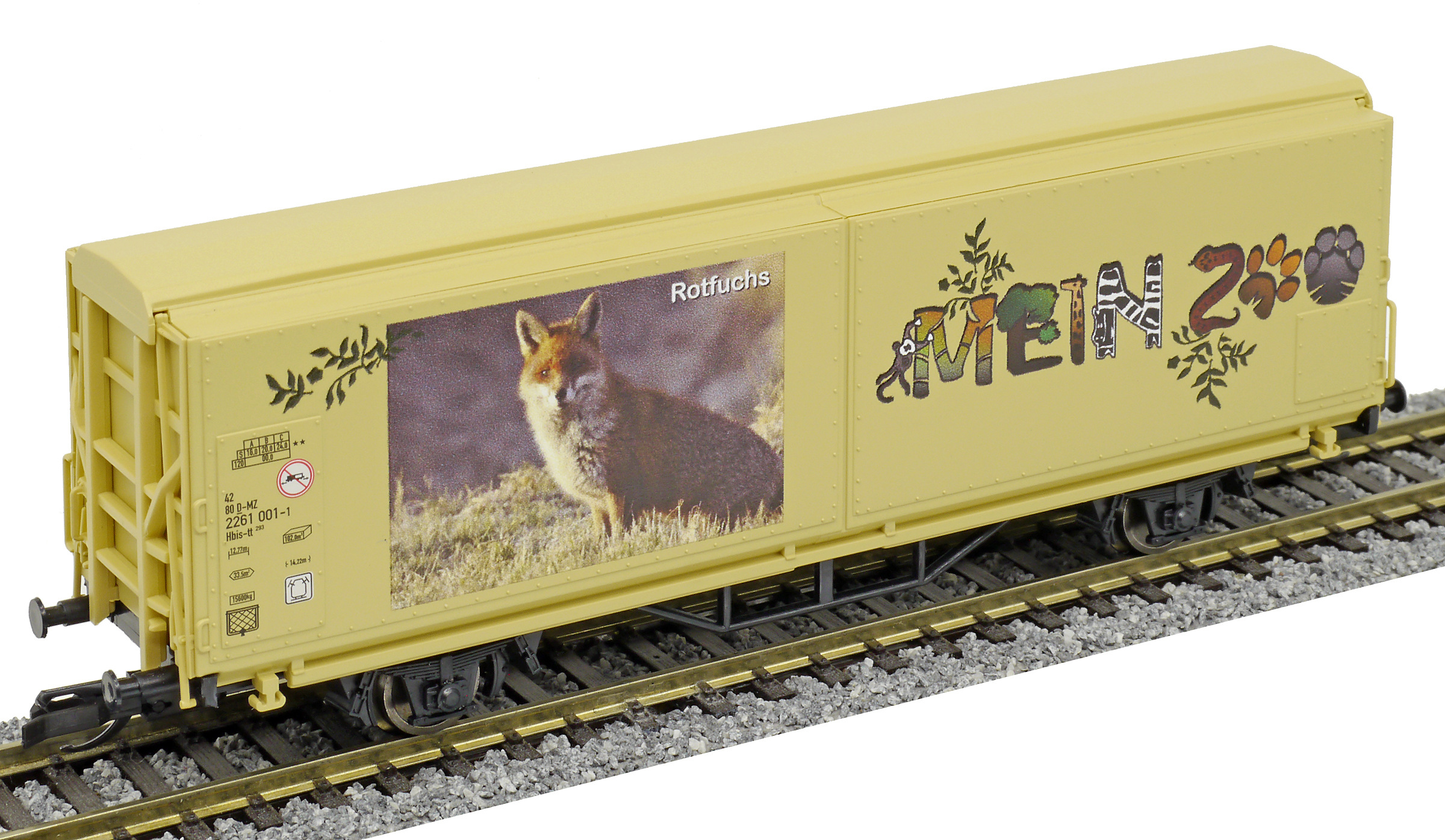 | krytý nákladní vůz s posuvnými stěnami a s reklamním potiskem „Mein Zoo” |