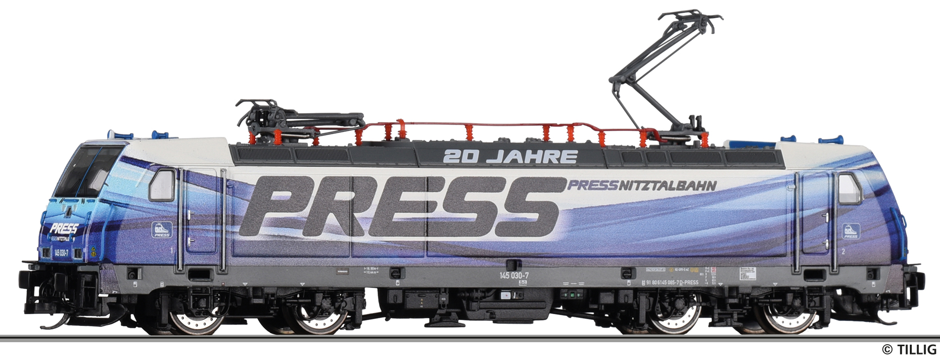 Popis   elektrická lokomotiva s reklamín potiskem „20 Jahre PRESS““
