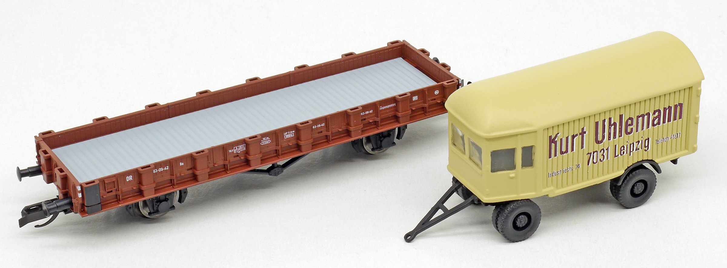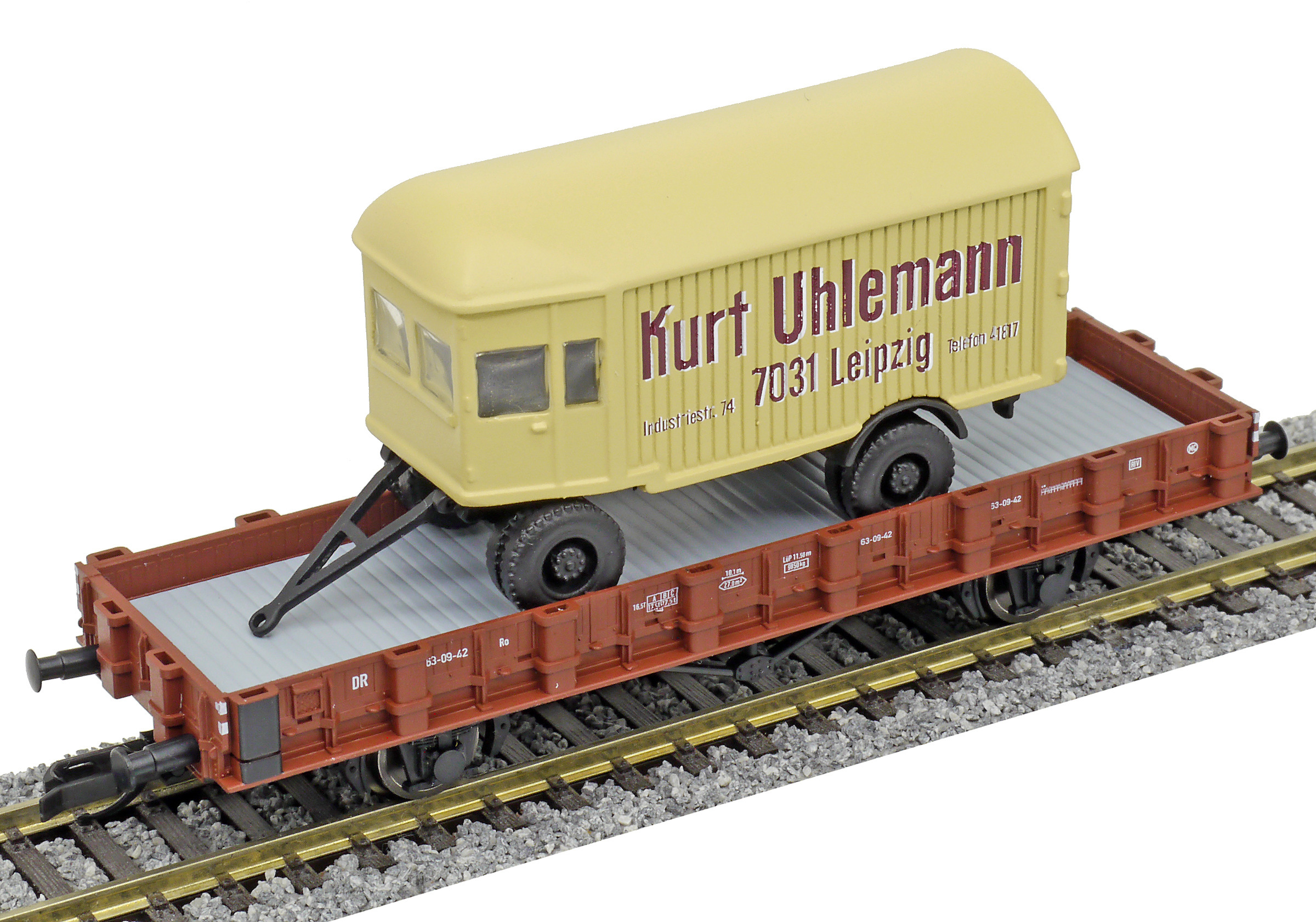 | nízkostěnný vůz červenohnědý s nákladním přívěsem „Kurt Uhlemann“ |