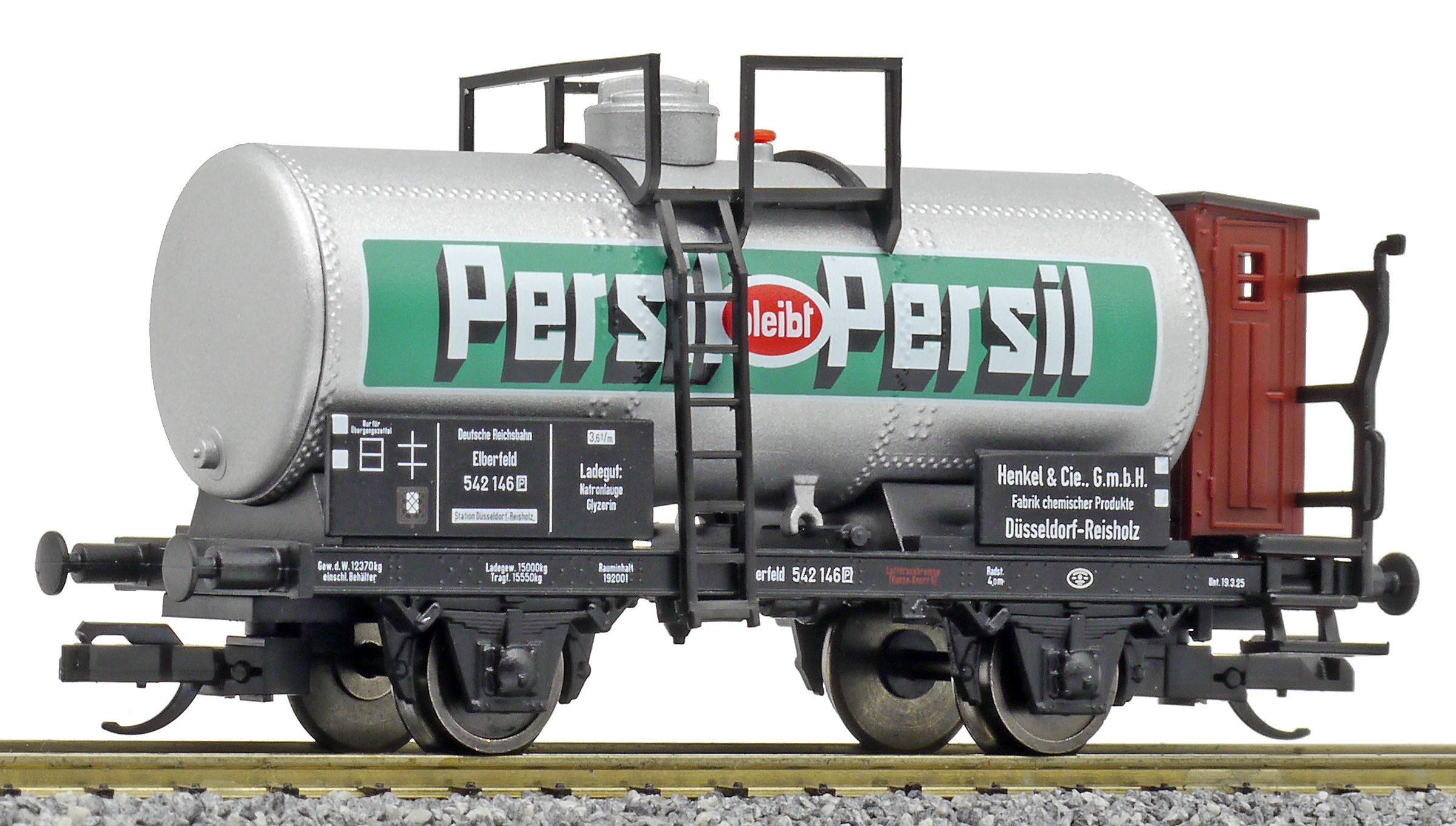 | kotlový nákladní vůz stříbrný s brzdařskou budkou „Persil“ |