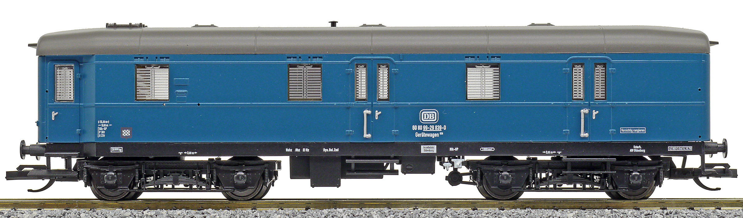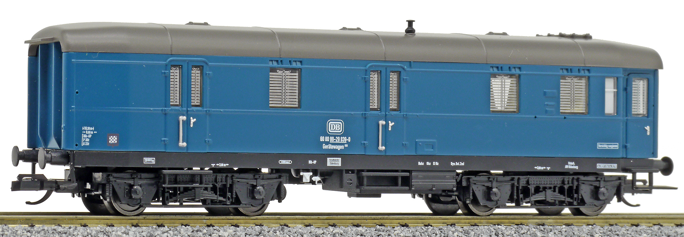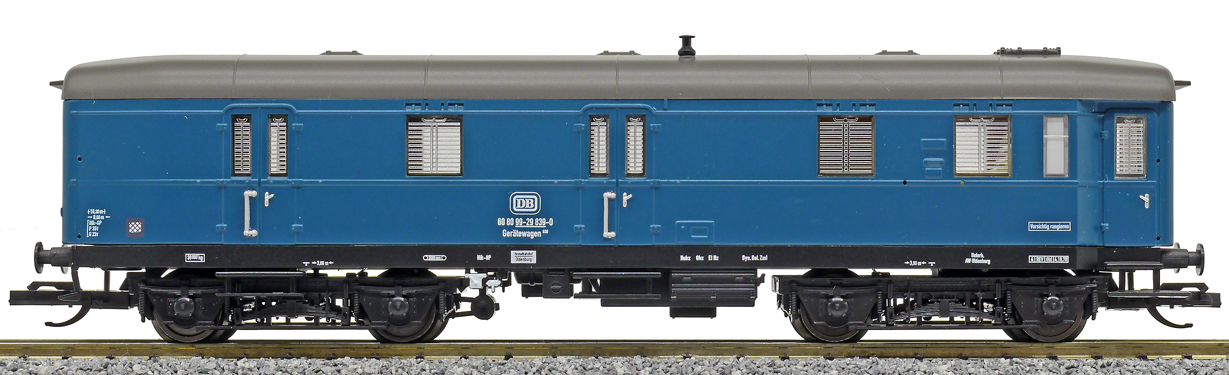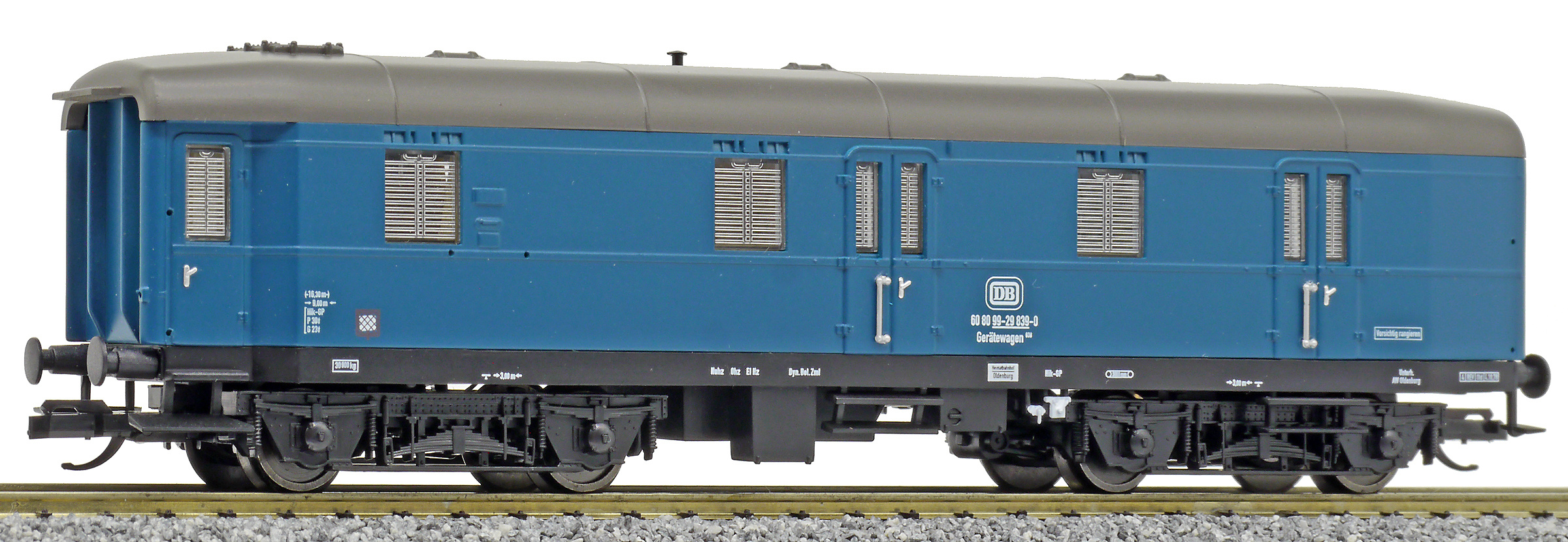 | vůz do pracovního vlaku modrý s šedou střechou |