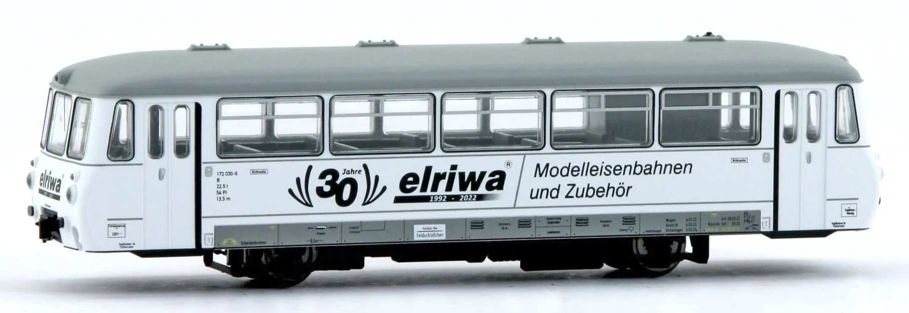 | motorový vůz bílý s reklamním potiskem „30 Jahre elriwa“ |