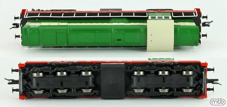 měřítko 1:120 - rozchod kolejí 12 mm osvětlení - 3 reflektory vpředu, 2 světla vzadu, přepínatelné podle směru jízdy 6 hnaných náprav 0 bandážovaných náprav kinematika krátkého spřáhla (KKK) podle normy NEM 358 digitální rozhraní podle NEM 662 s konektorem Next18 pojezd s kuličkovými ložisky 142 mm - celková délka modelu přes nárazníky 6 - celkový počet náprav nebo rozložení náprav 300 g - hmotnost brutto - model včetně prodejního obalu 205 g - hmotnost netto - pouze model
