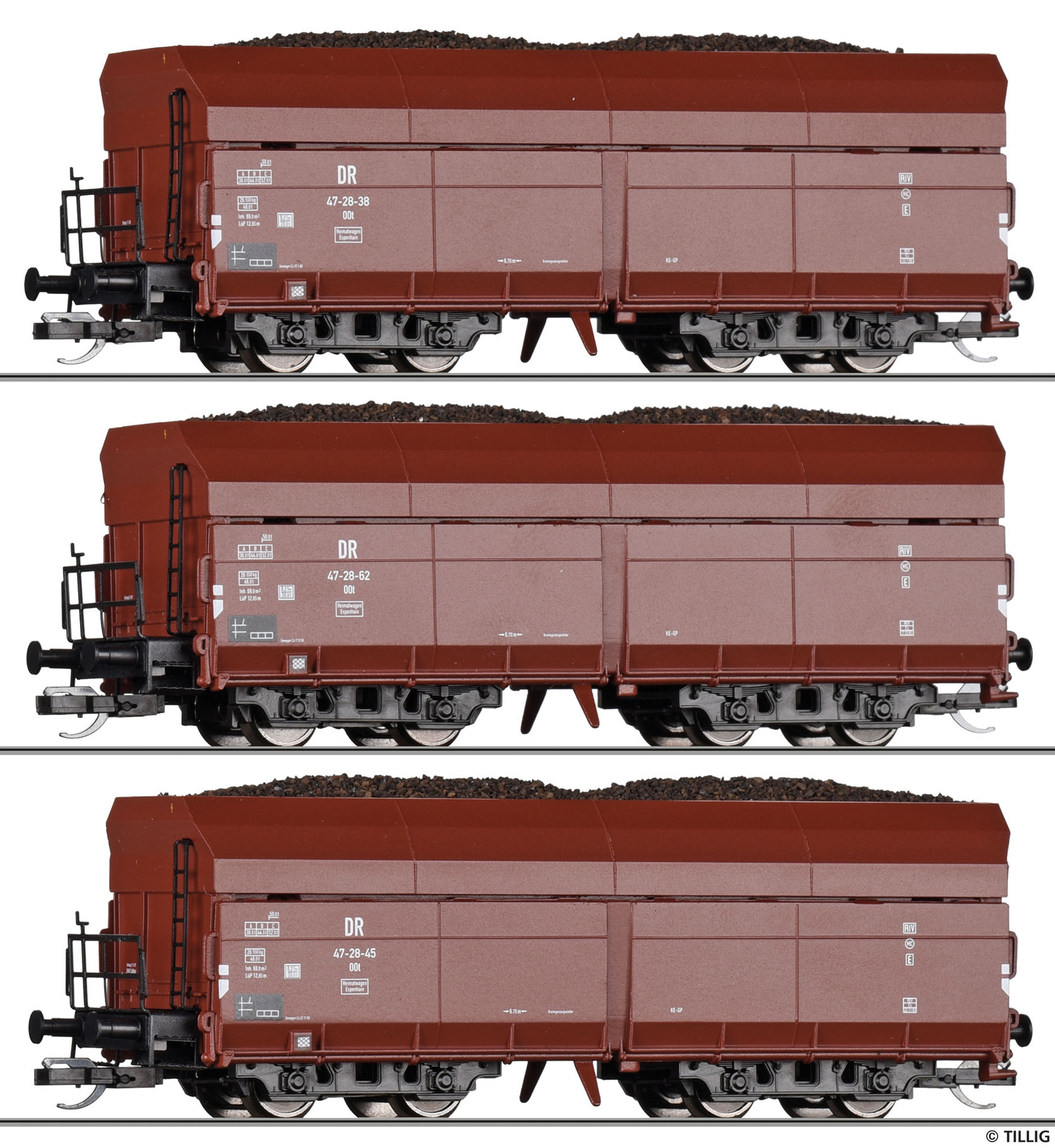 | set tří samovýsypných vozů s nákladem uhlí |