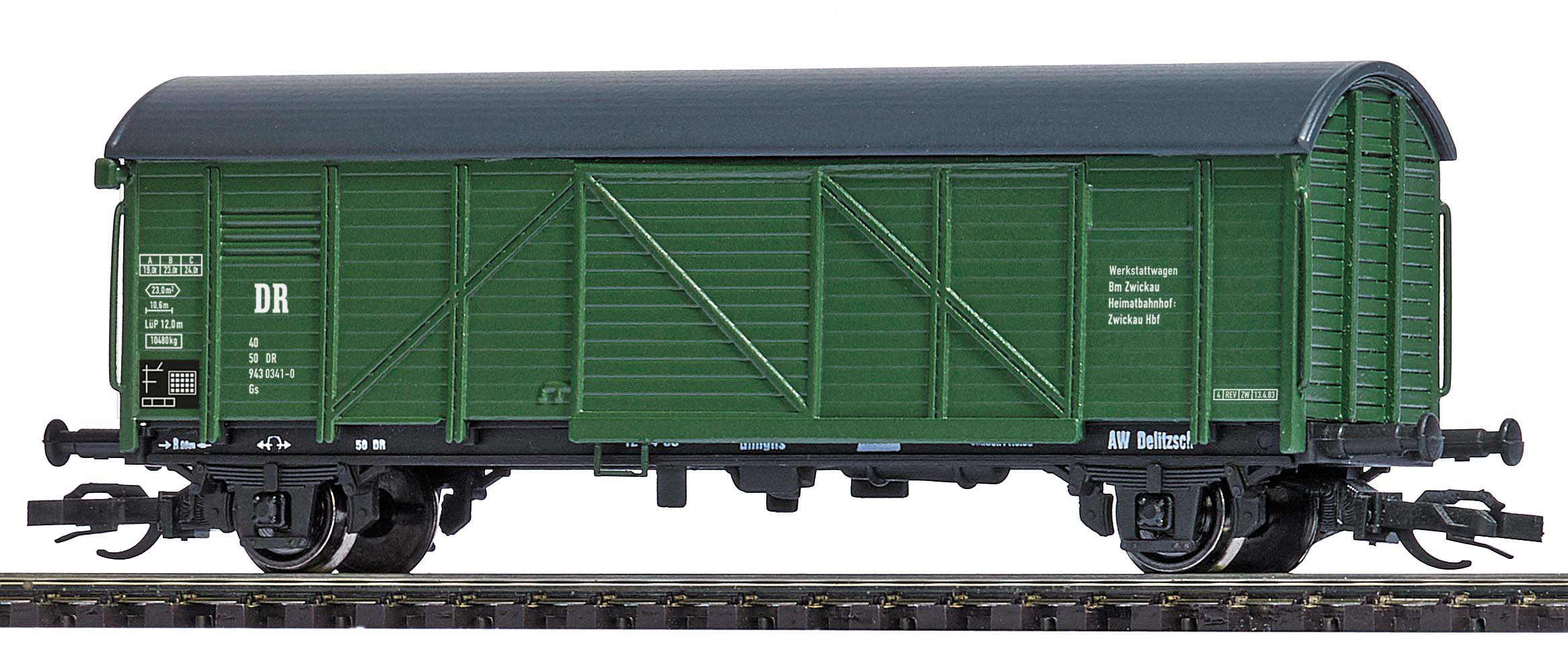 | krytý nákladní vůz zelený s černou střechou do pracovního vlaku |