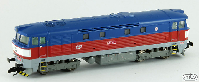 Popis   dieselová lokomotiva červená-modrá, tmavě šedý rám a pojezd, bílý pás na poprsí
