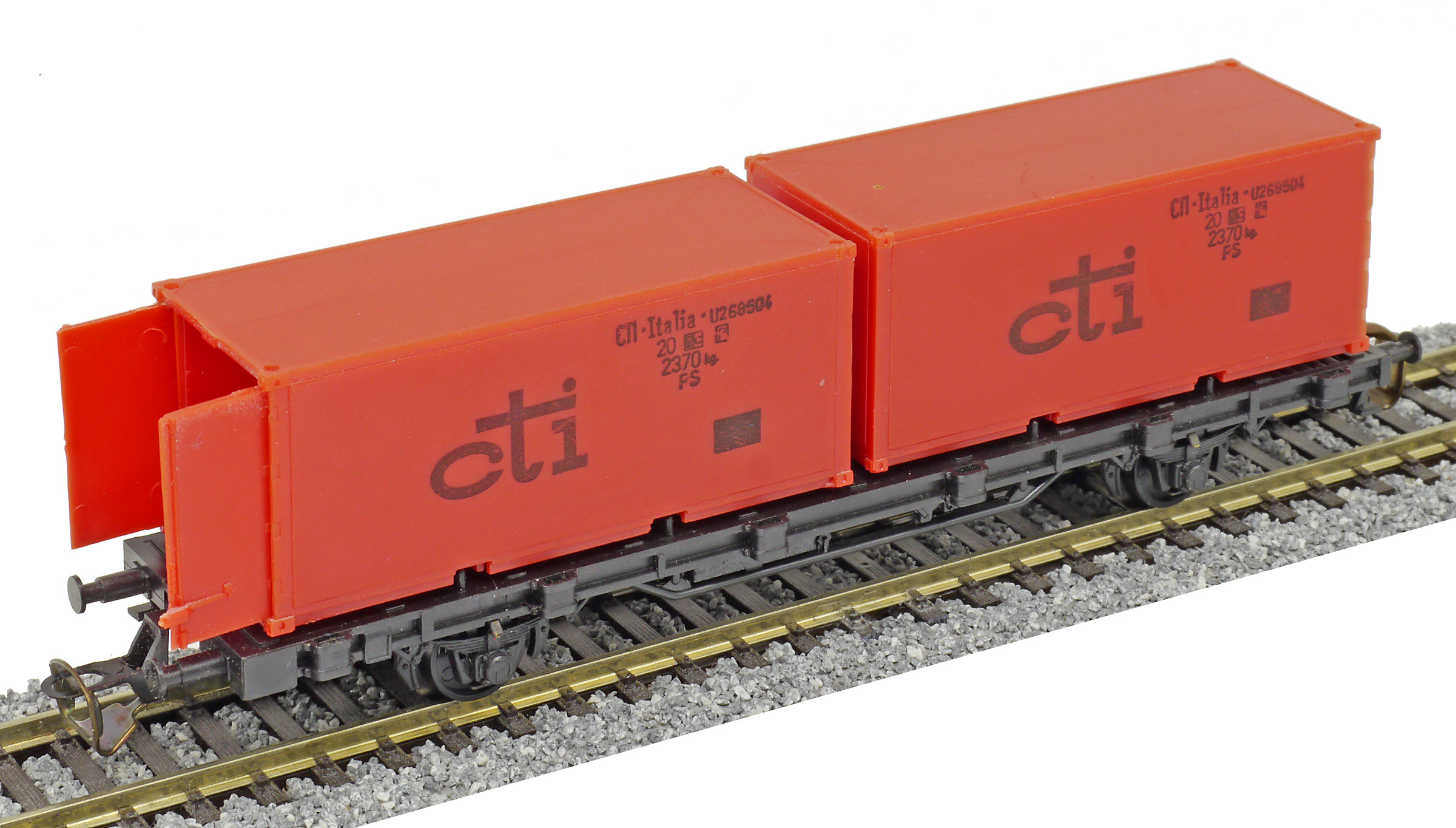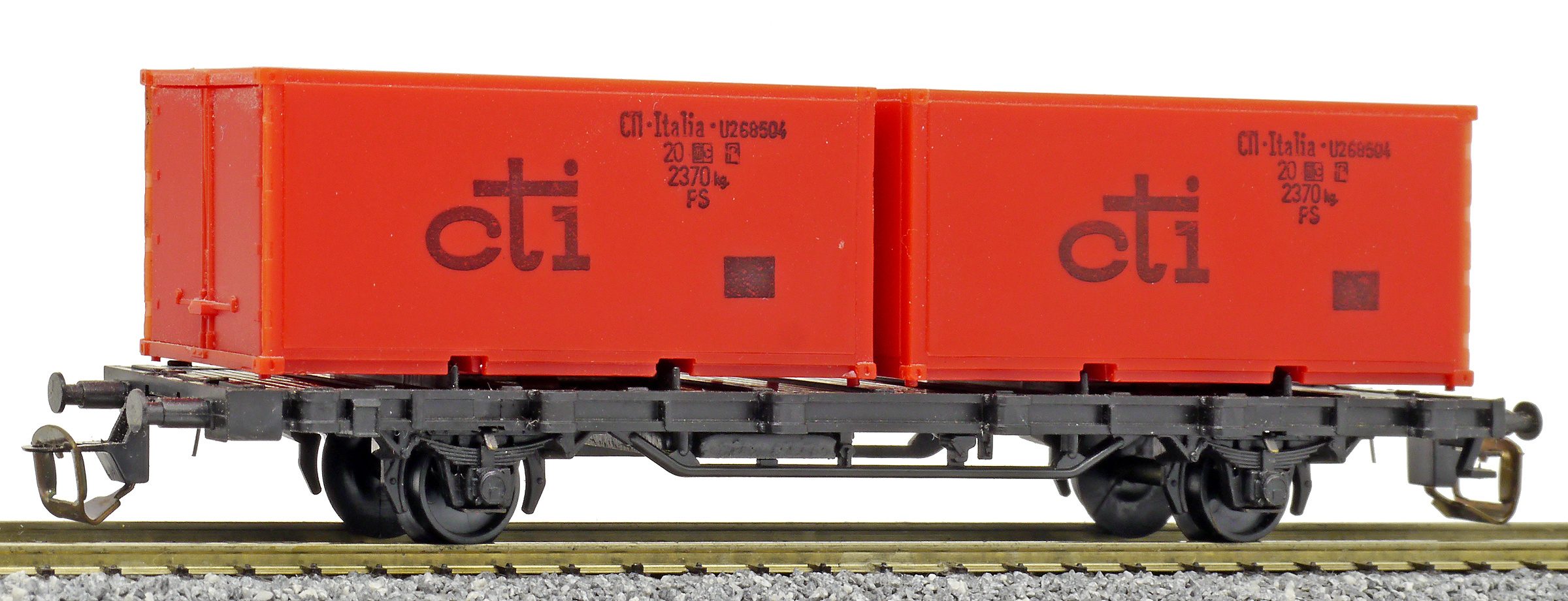| nákladní plošinový vůz černý se dvěma 20' kontejnery „cti“ |