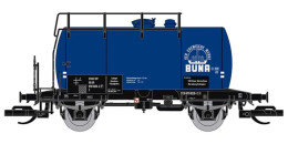 Popis   set tří modrých kotlových vozů s logem „BUNA“