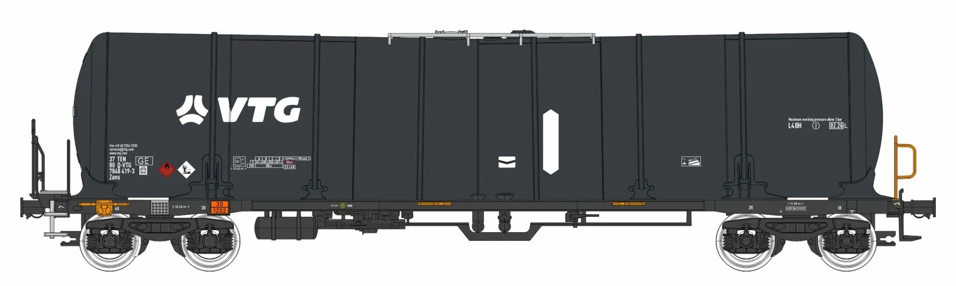 | kotlový vůz černý s logem „VTG“ |