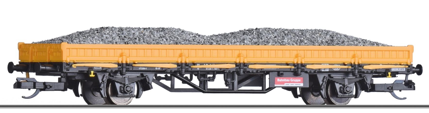 | nízkostěnný nákladní vůz žlutý s nákladem štěrku |
