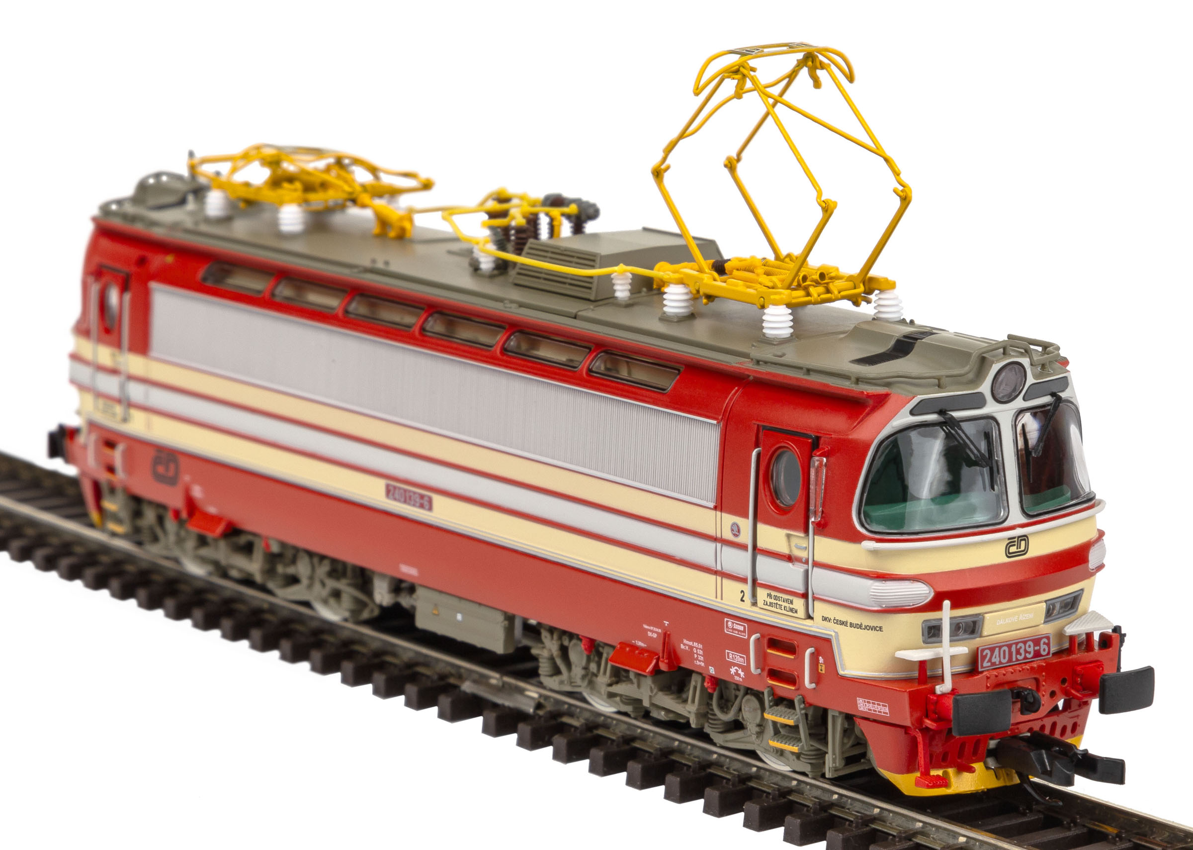 Popis   elektrická lokomotiva v barevné kombinaci červená-krémová, šedá střecha