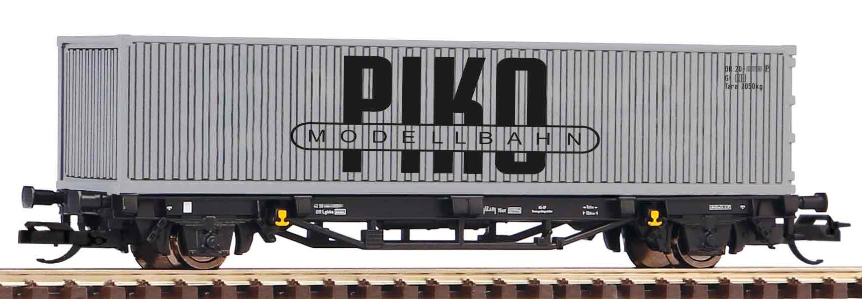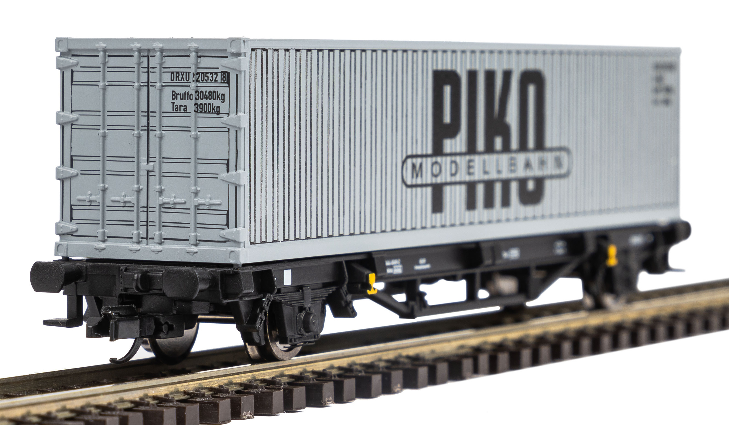 | plošinový vůz černý s nákladem 1x40' kontejneru „PIKO MODELLBAHN“ |