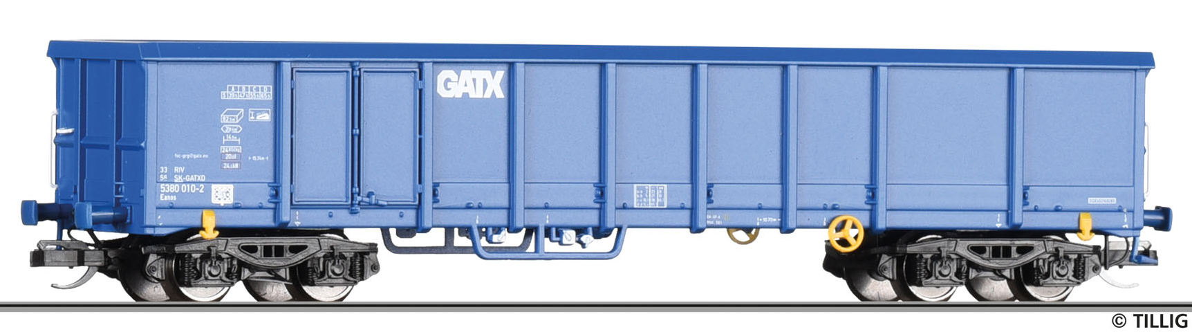 | vysokostěnný nákladní vůz modrý „GATX“ |