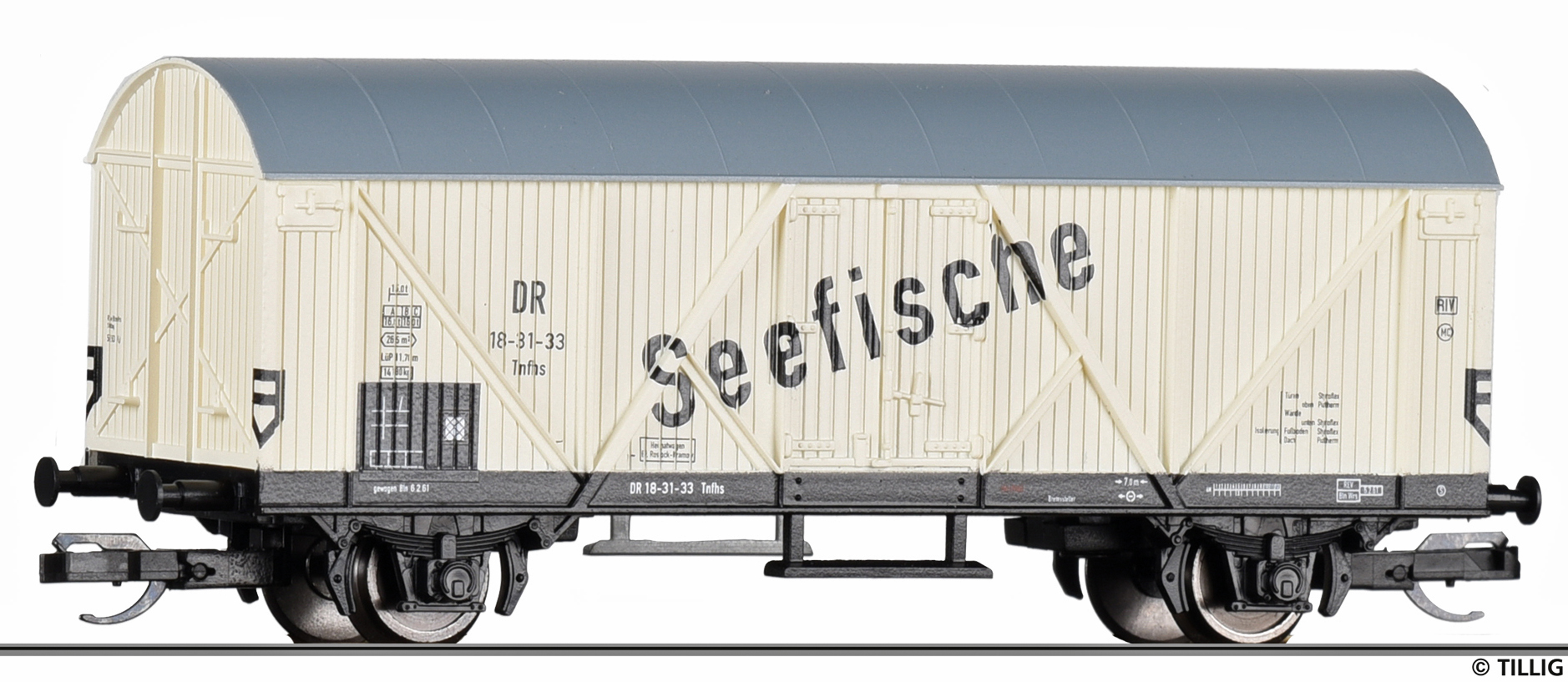 | nákladní chladící vůz bílý s šedou střechou „Seefische“ |
