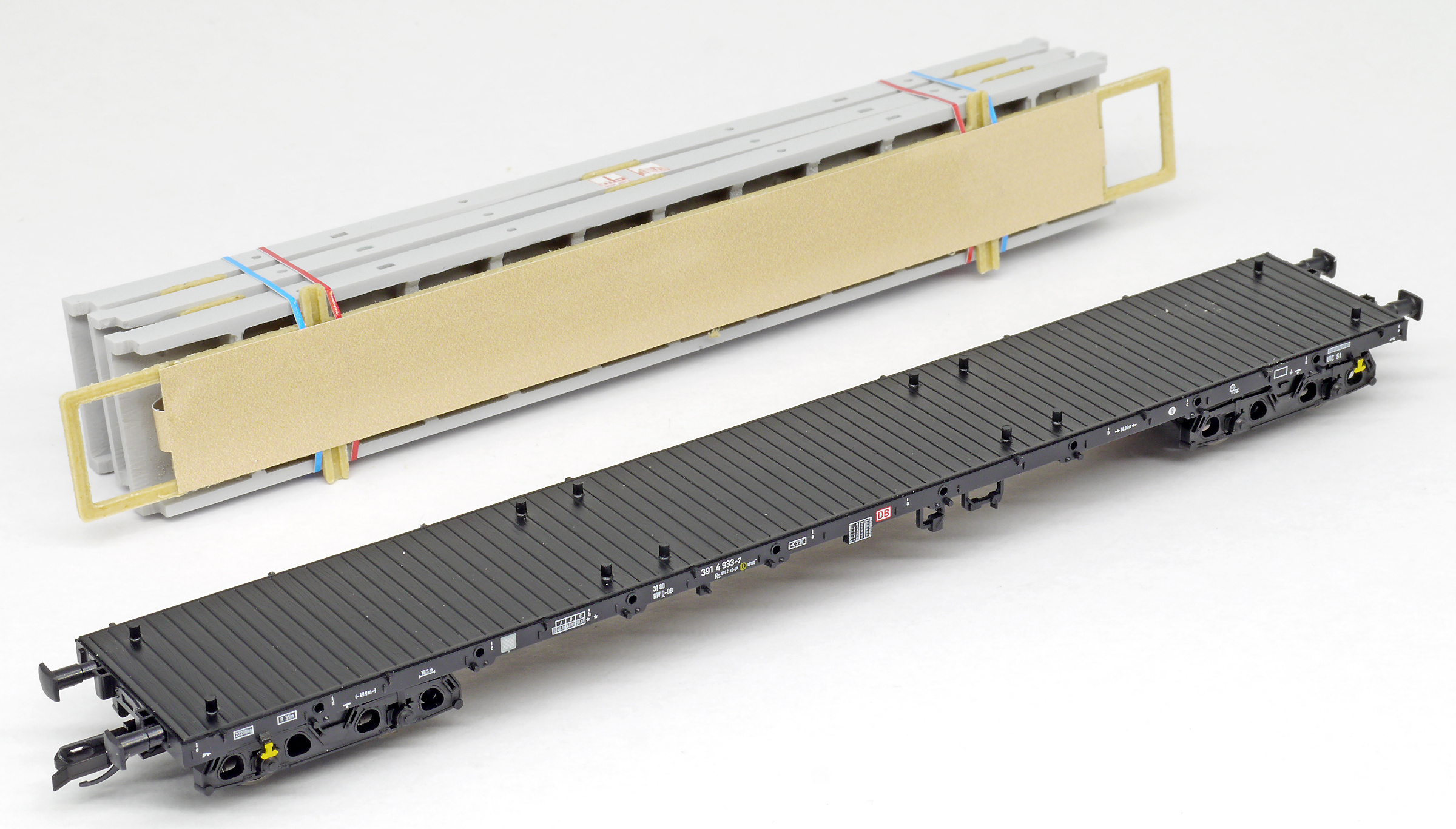 | nákladní plošinový vůz ložený korýtkovými stropními panely |