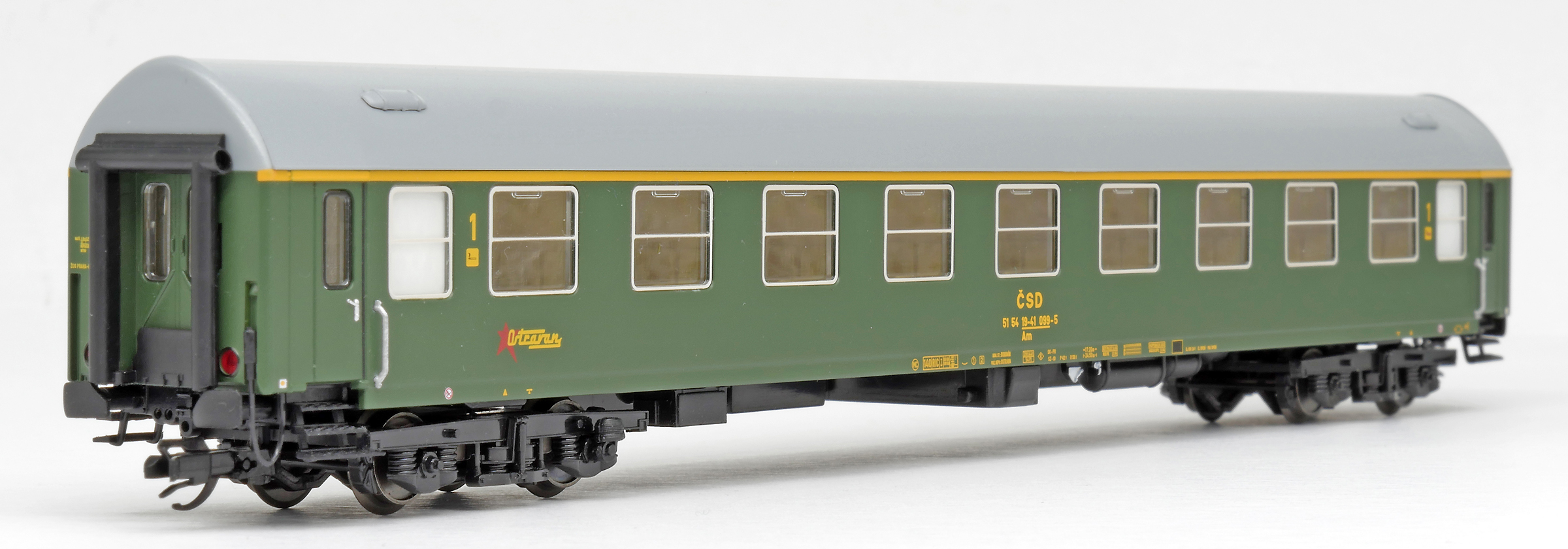| rychlíkový vůz zelený s šedou střechou 1. tř. „Ostravan“ |