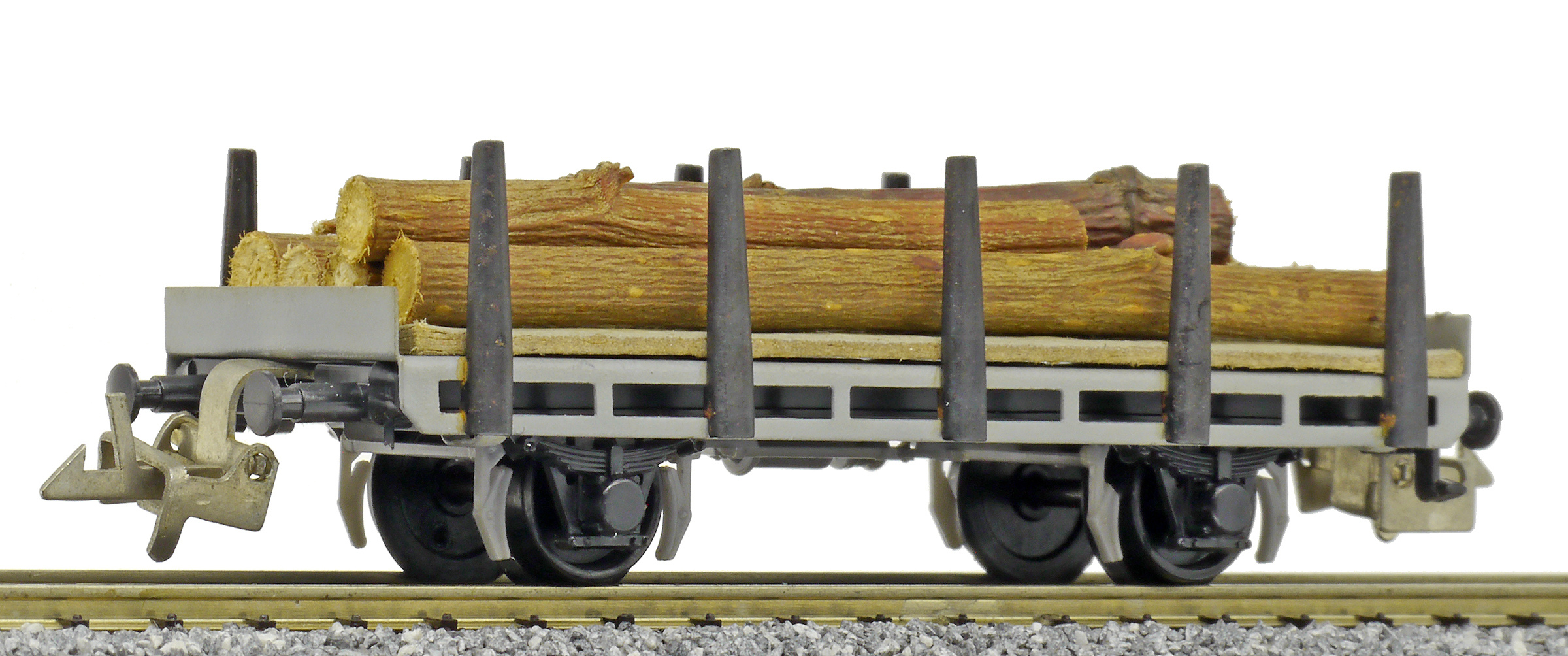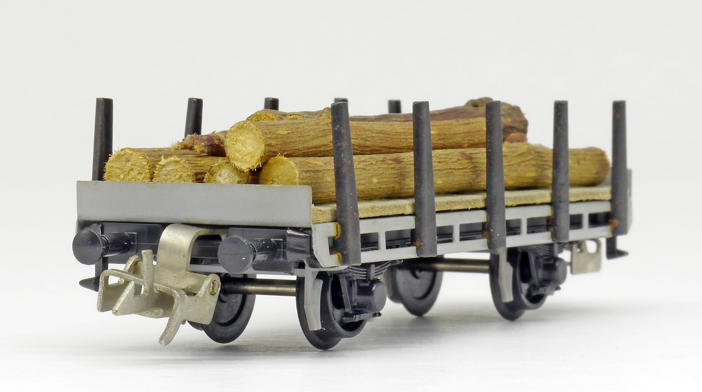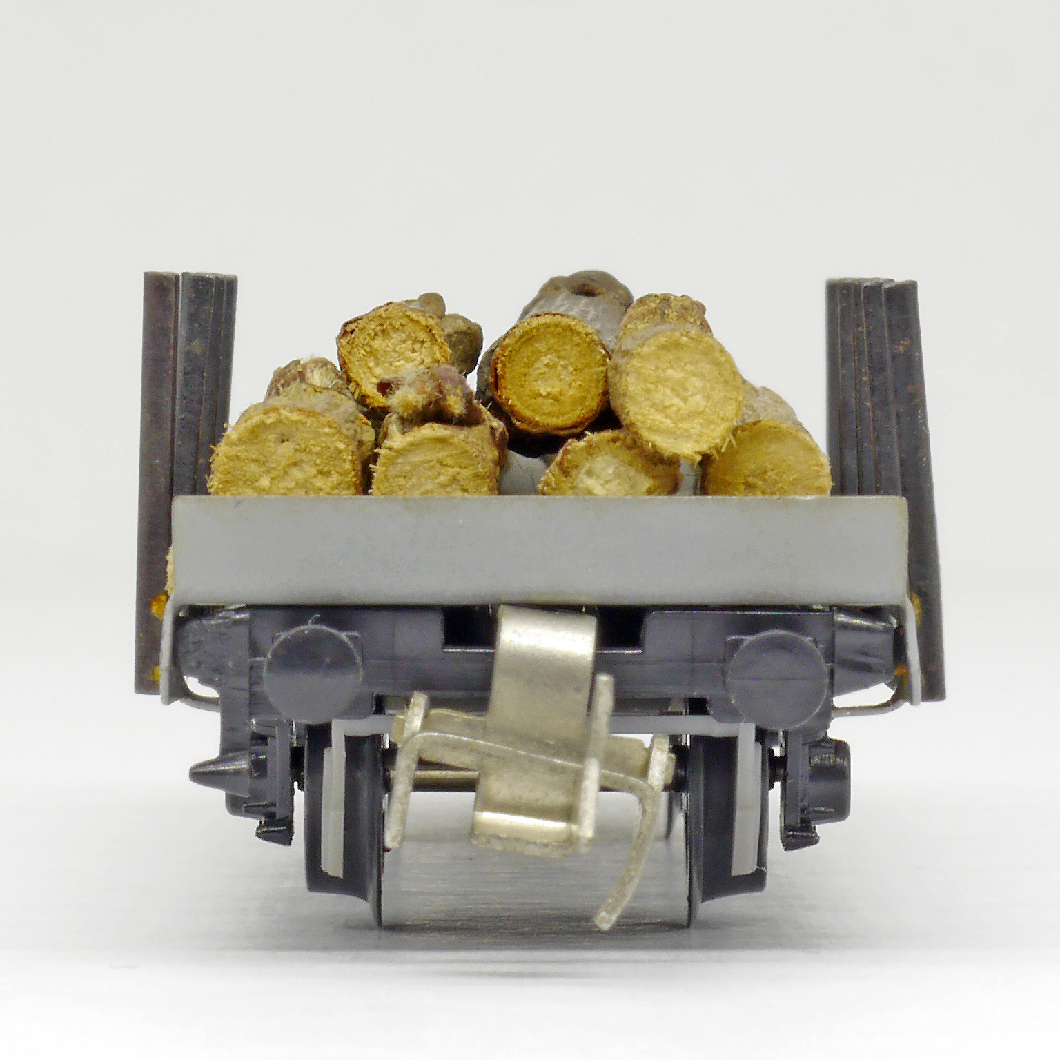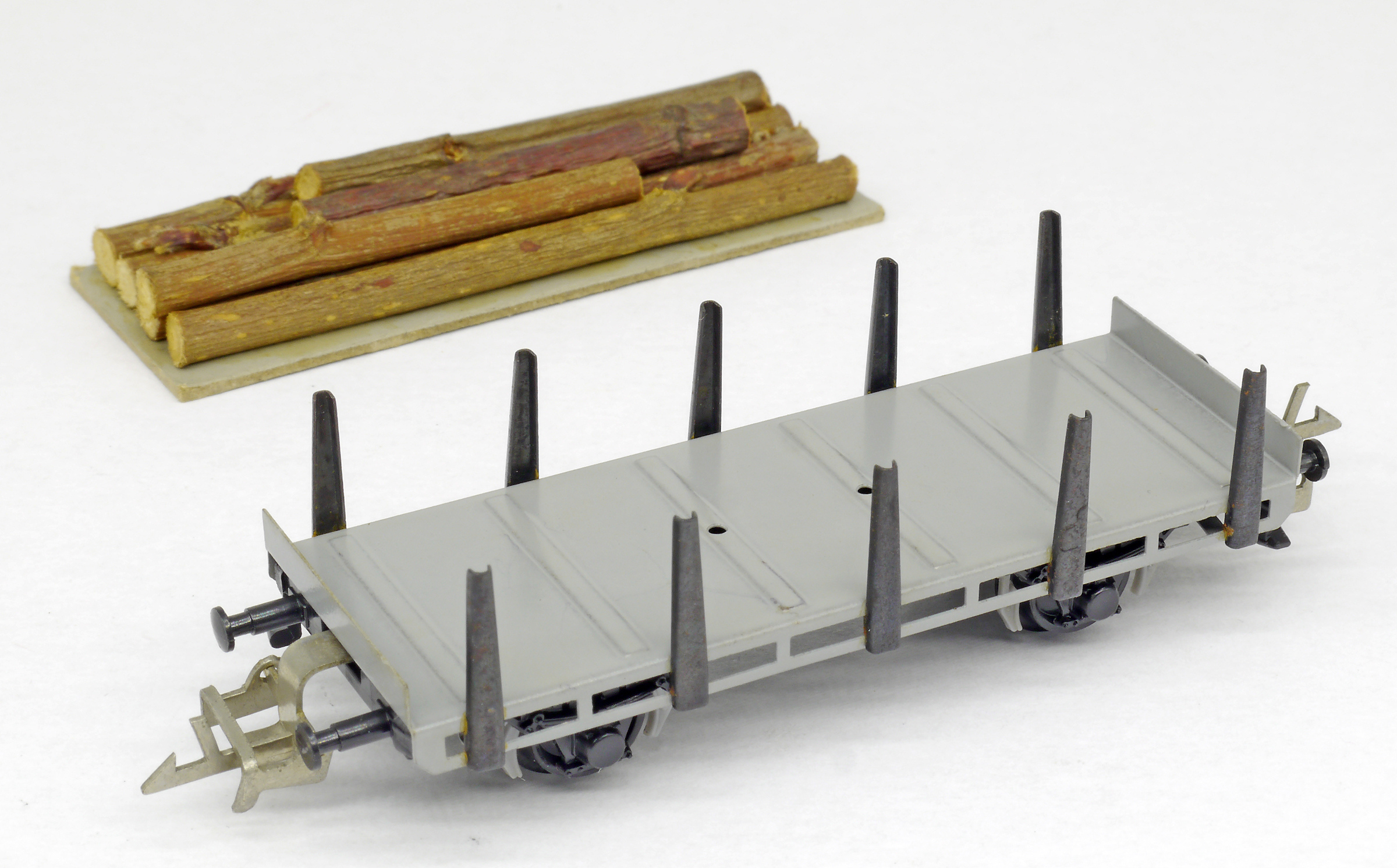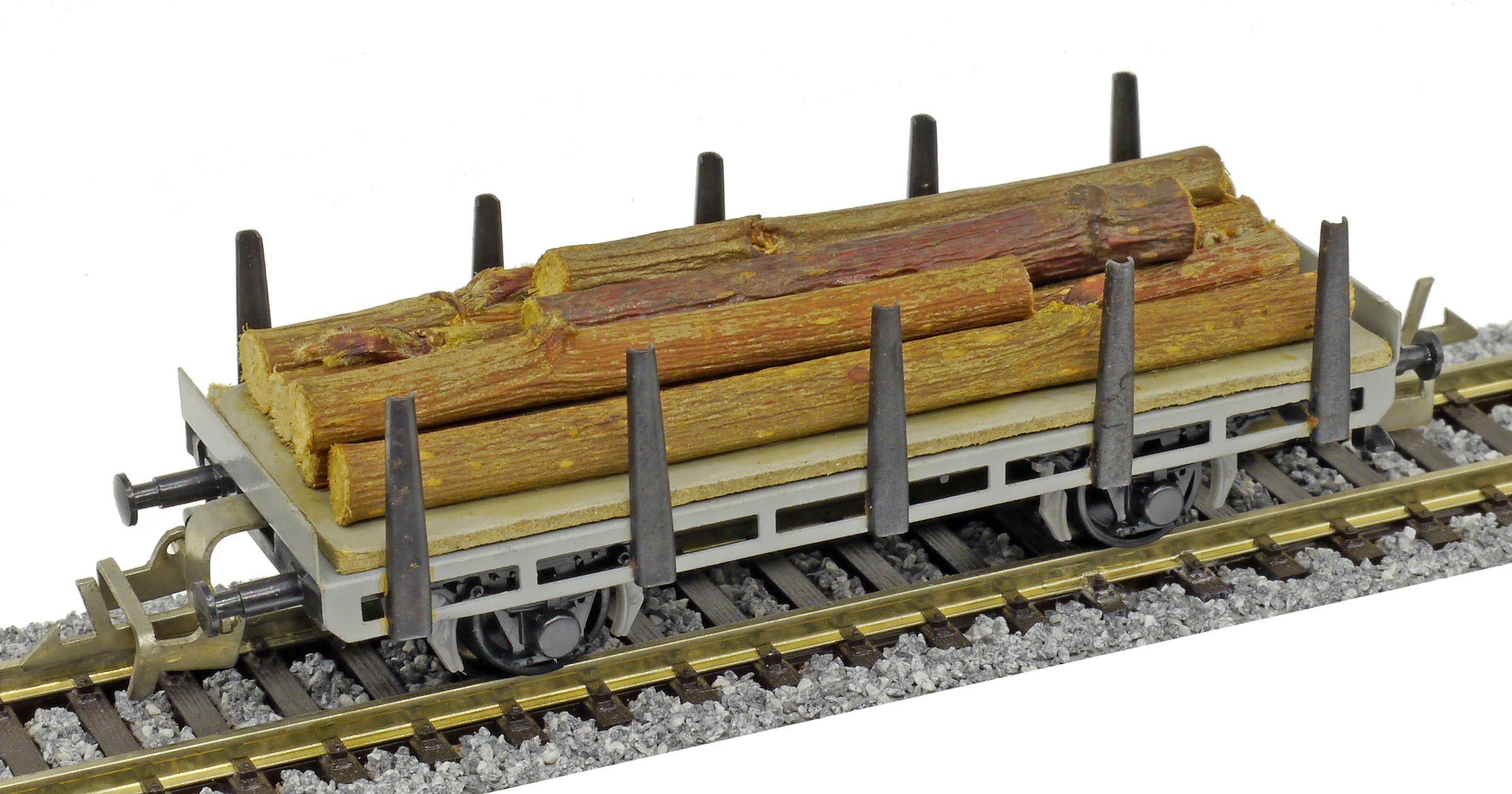 Popis   plošinový nákladní vůz s klanicemi s nákladem kulatiny, bez popisu