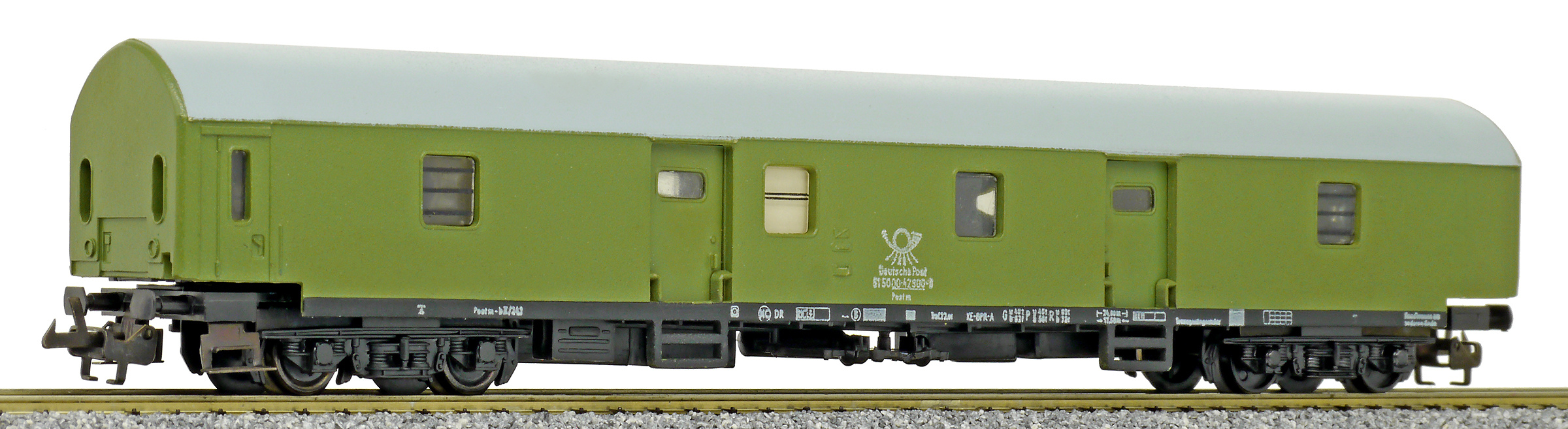 | poštovní vůz zelený s šedou střechou |