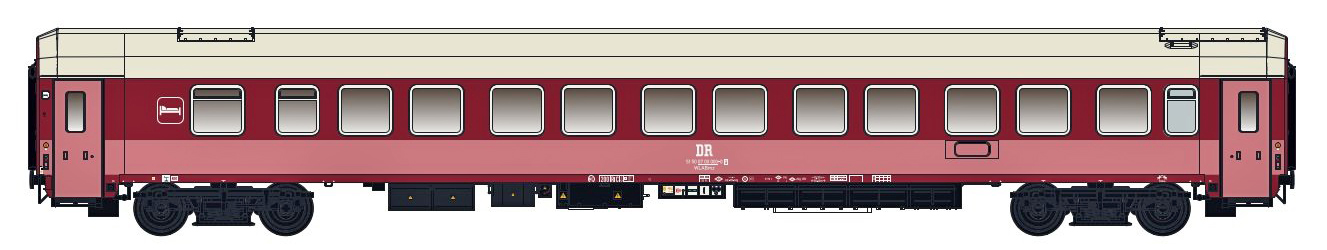 | lůžkový vůz vínově červený-růžový s šedou střechou, prototyp |