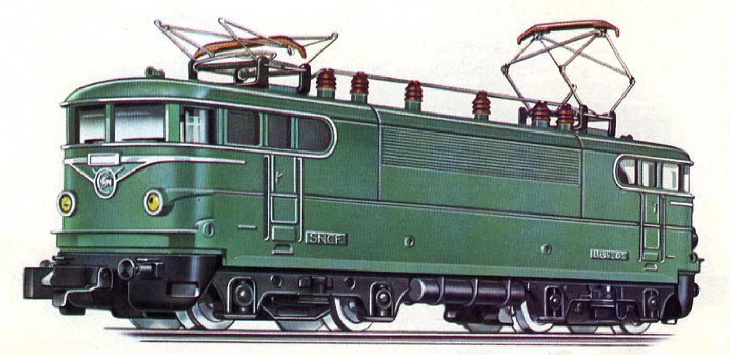 Popis   elektrická lokomotiva zelená, černý pojezd